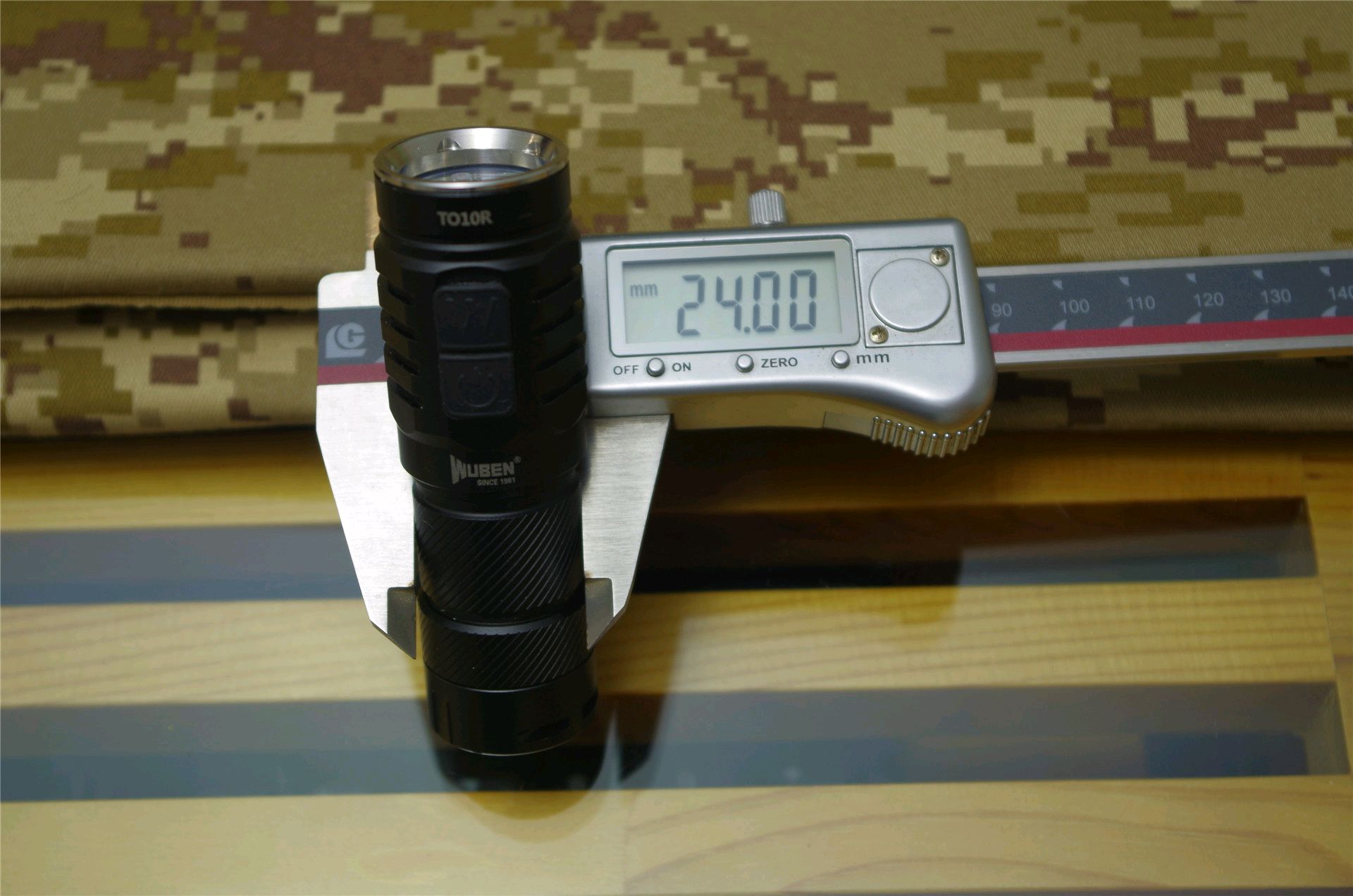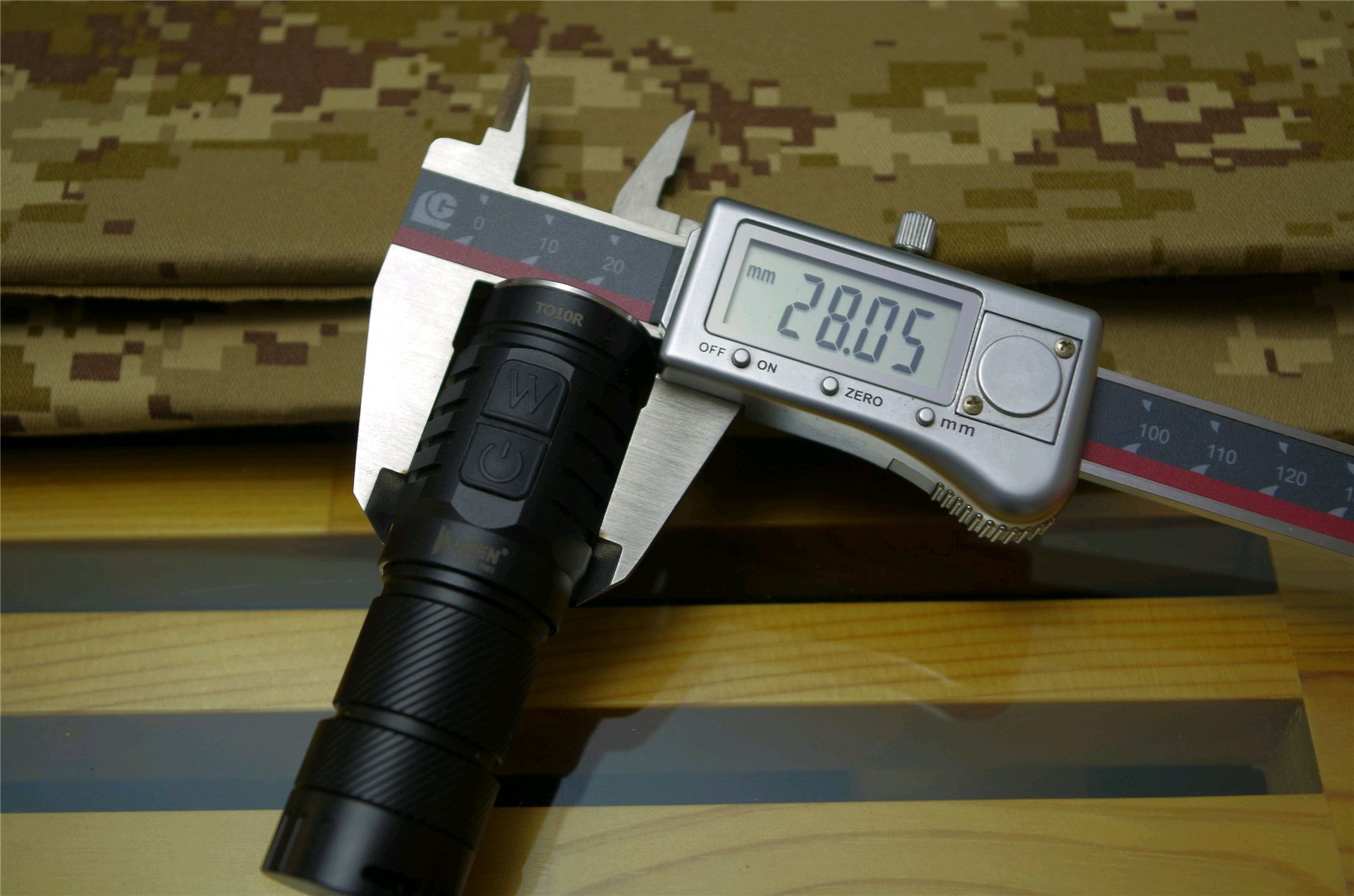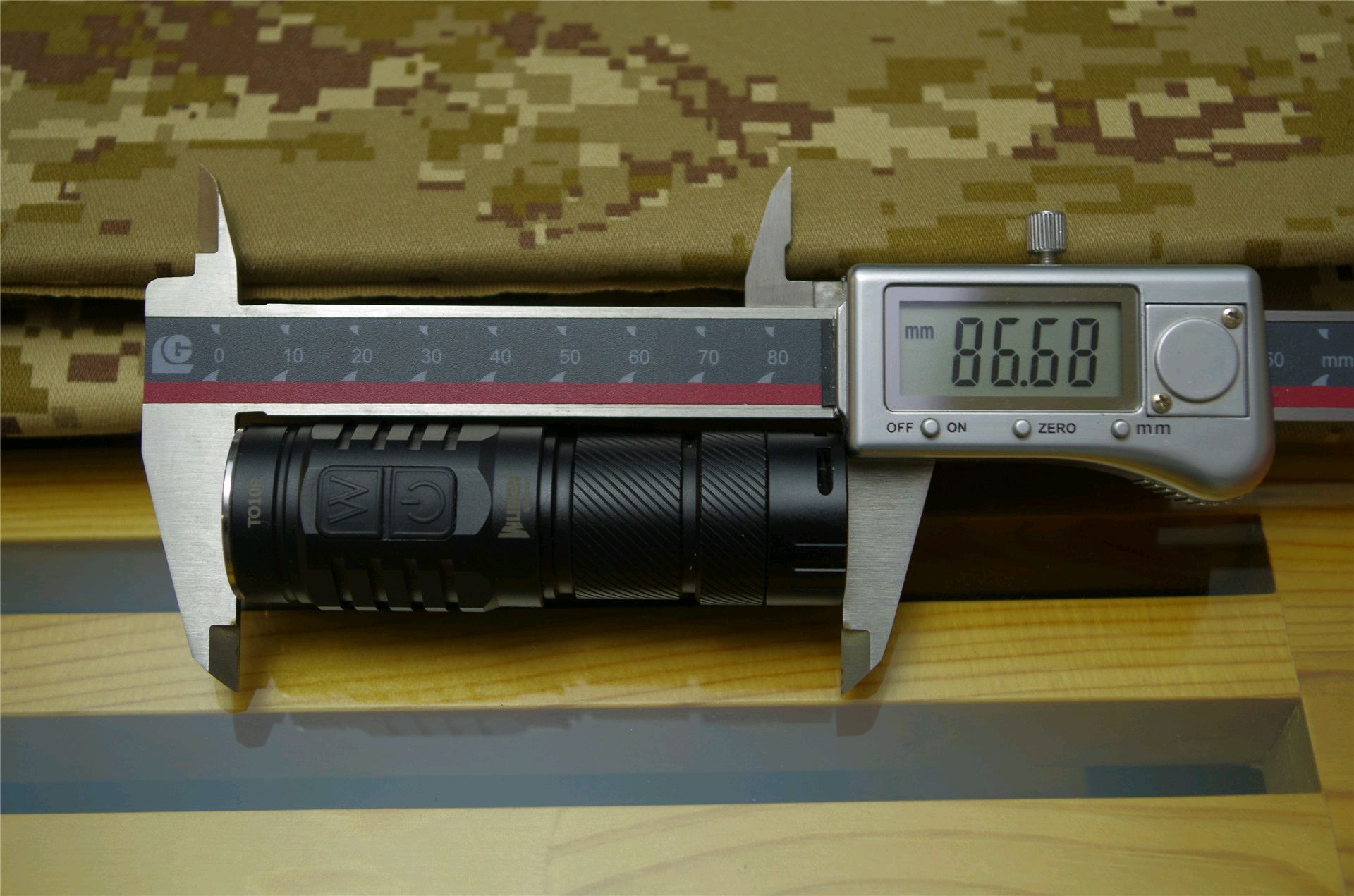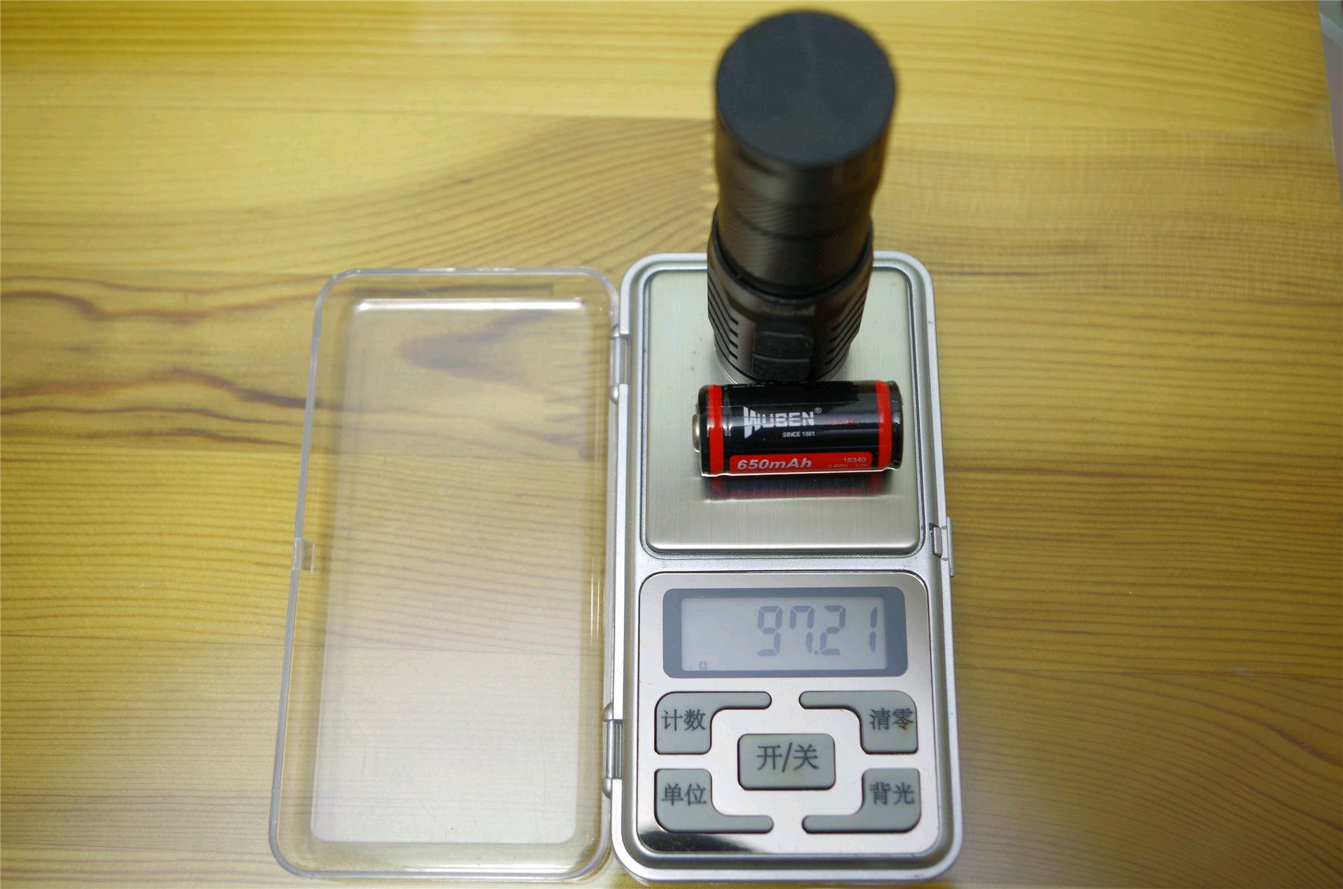 TO10R用料扎实,虽然身材不是很大但是手感倒是很有分量的,自重达到了78克之多,比较压手,其实这种规格的手电完全可以做的可以更轻便一些。加上标配的650mAh充电锂电池后总重97克。