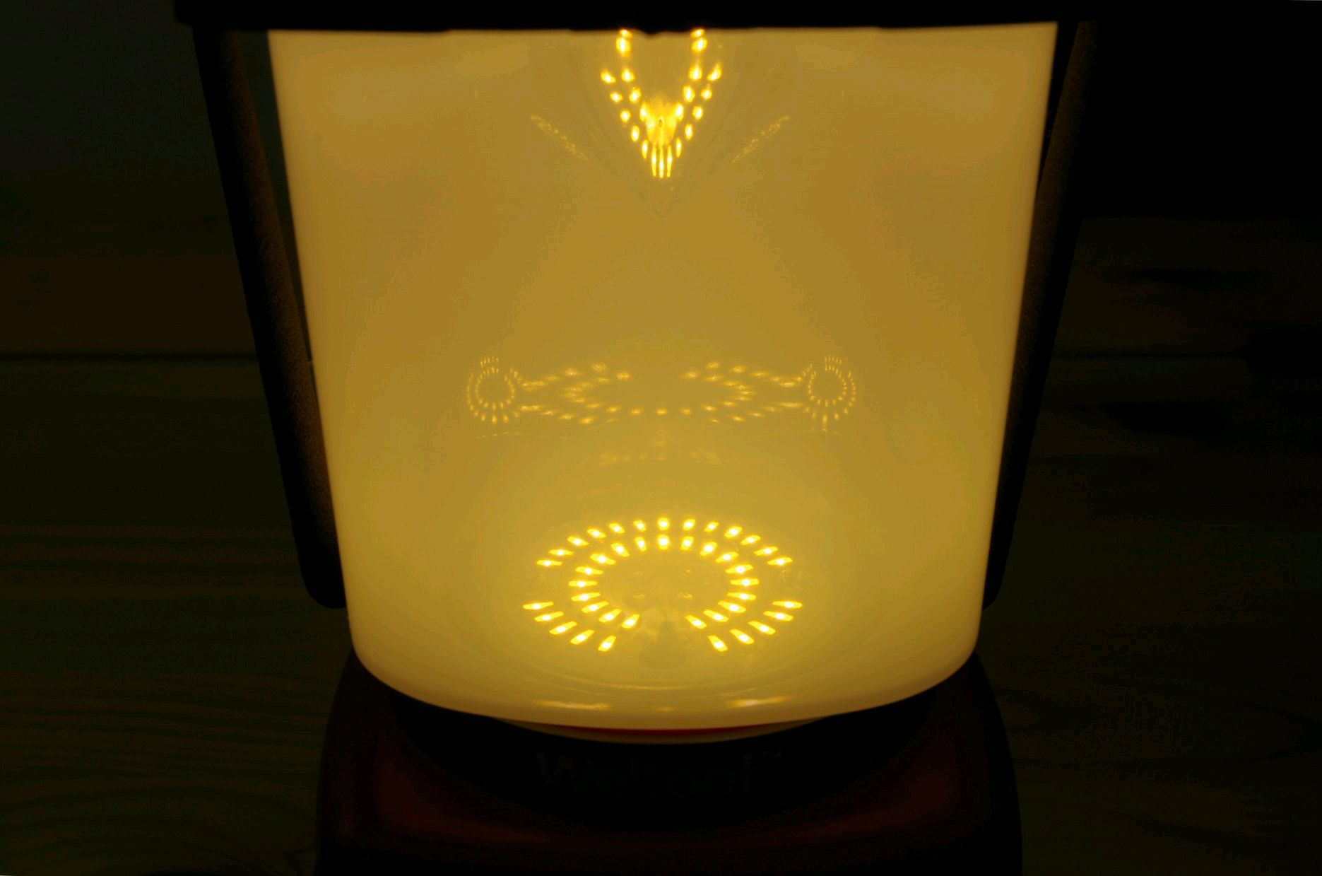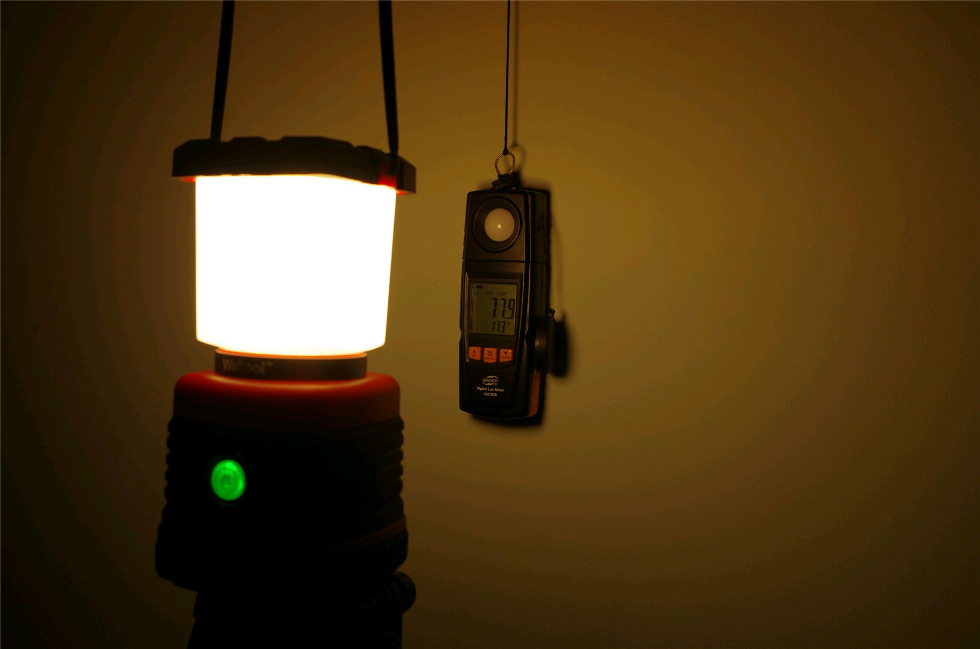 作为应急灾害露营灯,他的功能也是多样化的多模式照明内部42个暖白SMD LED+4个红光LED42个LED有2种模式:第一档低亮,280流明;运行时间可达30小时以上第二档高亮,705流明;运行时间达20小时4个红色LED(可以调2种模式):1,常亮状态(红光警示模式);亮度138流明;2,SOS闪烁(紧急求教信号模式)138流明;无极调光功能:在任意常亮档,按住开关,灯光会自动由高到低,再由低到高循环,松开开关即锁定当前亮度。单击电源开关按键后直接进入白光低亮档位,然后单击开关按键进行白光高亮–红光常亮–SOS闪烁,等各工作模式选择,开关按键无记忆。