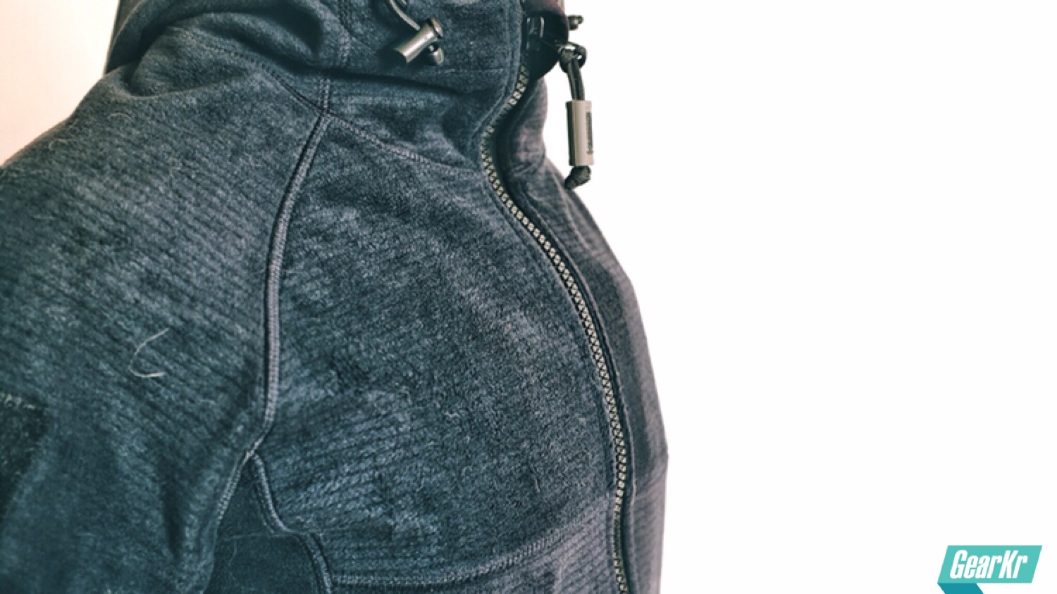 这件抓绒衣拿到手第一感觉相比传统户外抓绒衣要重和硬,可能主要是由于在抓绒面料之间有一层TPU防水防风透气膜,所以说这件衣服看起来是一件抓绒,但其实性能上可以跟软壳相比。不过即使TPU膜防水,但由于没有压胶,所以还是建议各位不要真正去测试防雨性能了,你想想即使水很少渗进去,但整个抓绒都湿了穿身上是什么感觉。