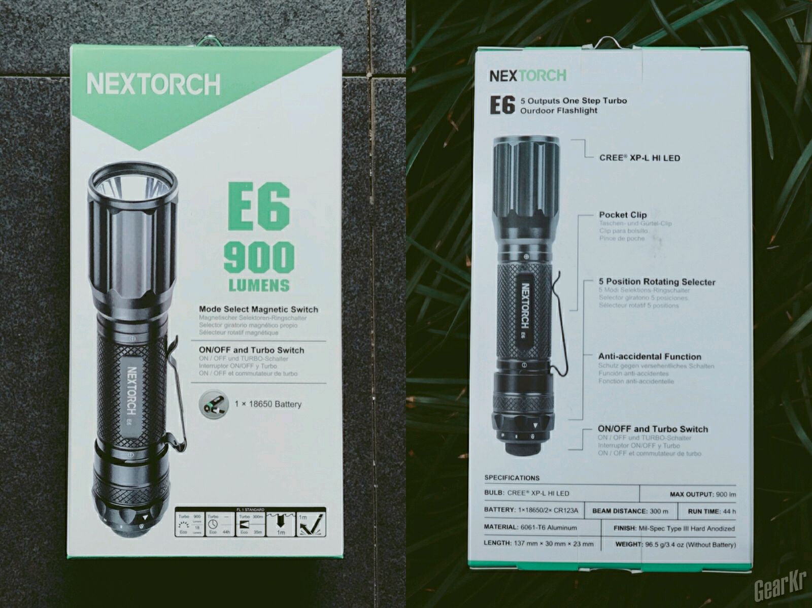 经过十多天的等待,终于等来了快递。打开快递包装,正面最先看到的就是900流明的最高亮度(不过仅限Turbo档);背面羽筒各部分简介和规格信息。