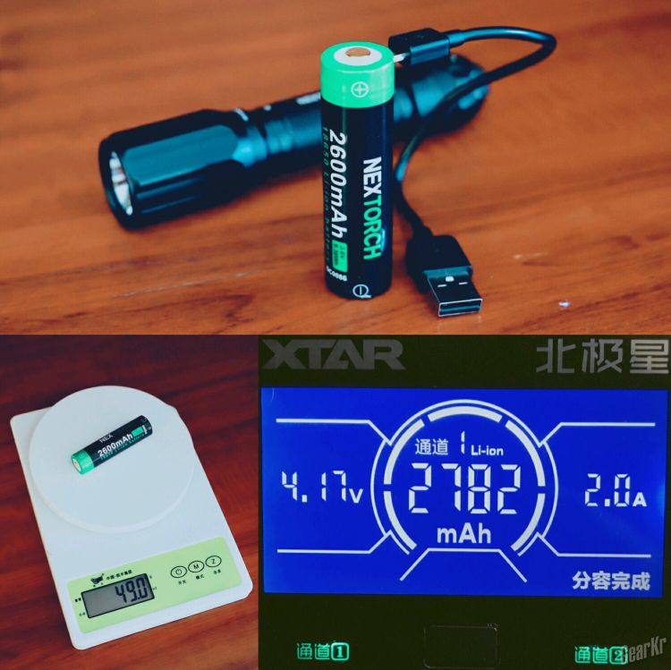 虽然舍弃了筒身直充,但是官方体贴地搭配了可以USB直充的电池。电池分容为2782mAh、4.17V。