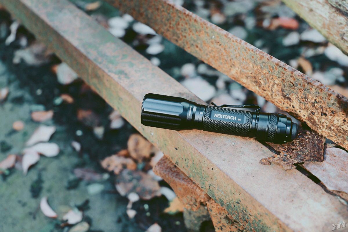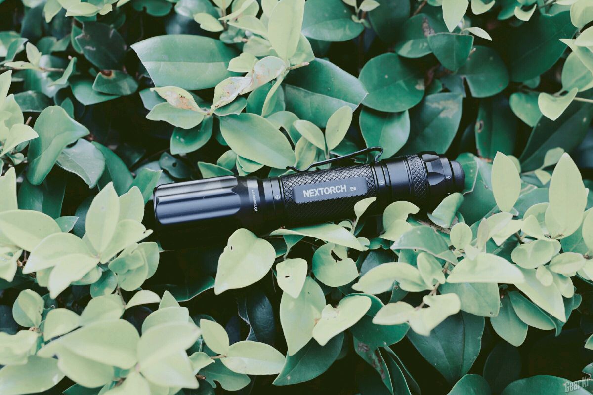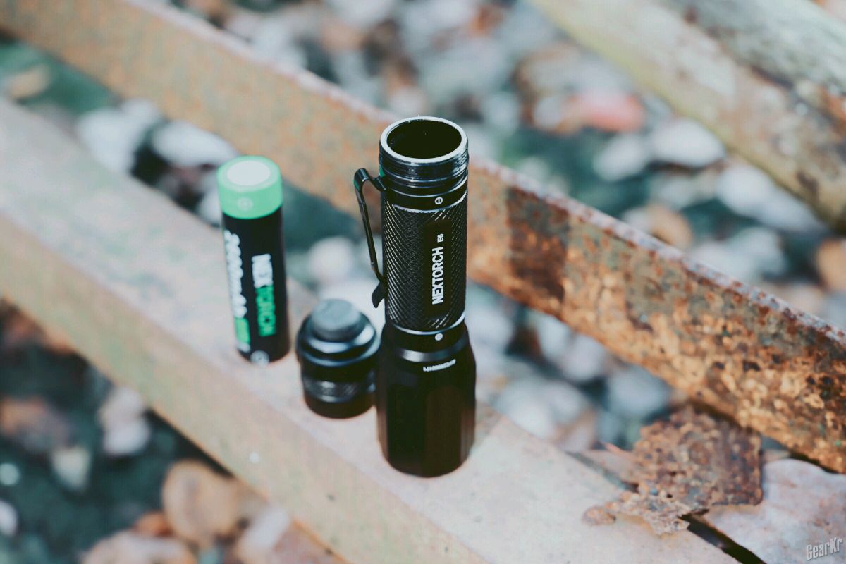 E6羽筒采用T6铝合金,空筒拿在手中倍感轻盈,表面处理优良,握持手感细腻。筒身与尾盖上精致的菱形滚花,在有水的情况下不易打滑。正面激光蚀刻有NEXTORCH的logo、E6型号以及电池正负极标识;反面为羽筒小巧的logo。整体外形与TA系列电筒比较相似。