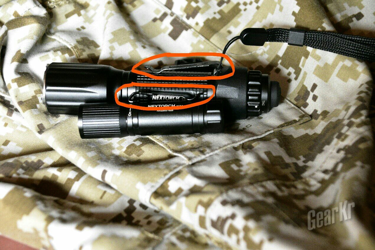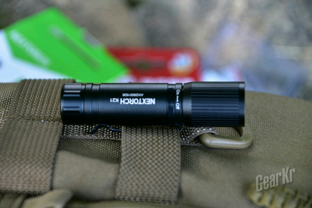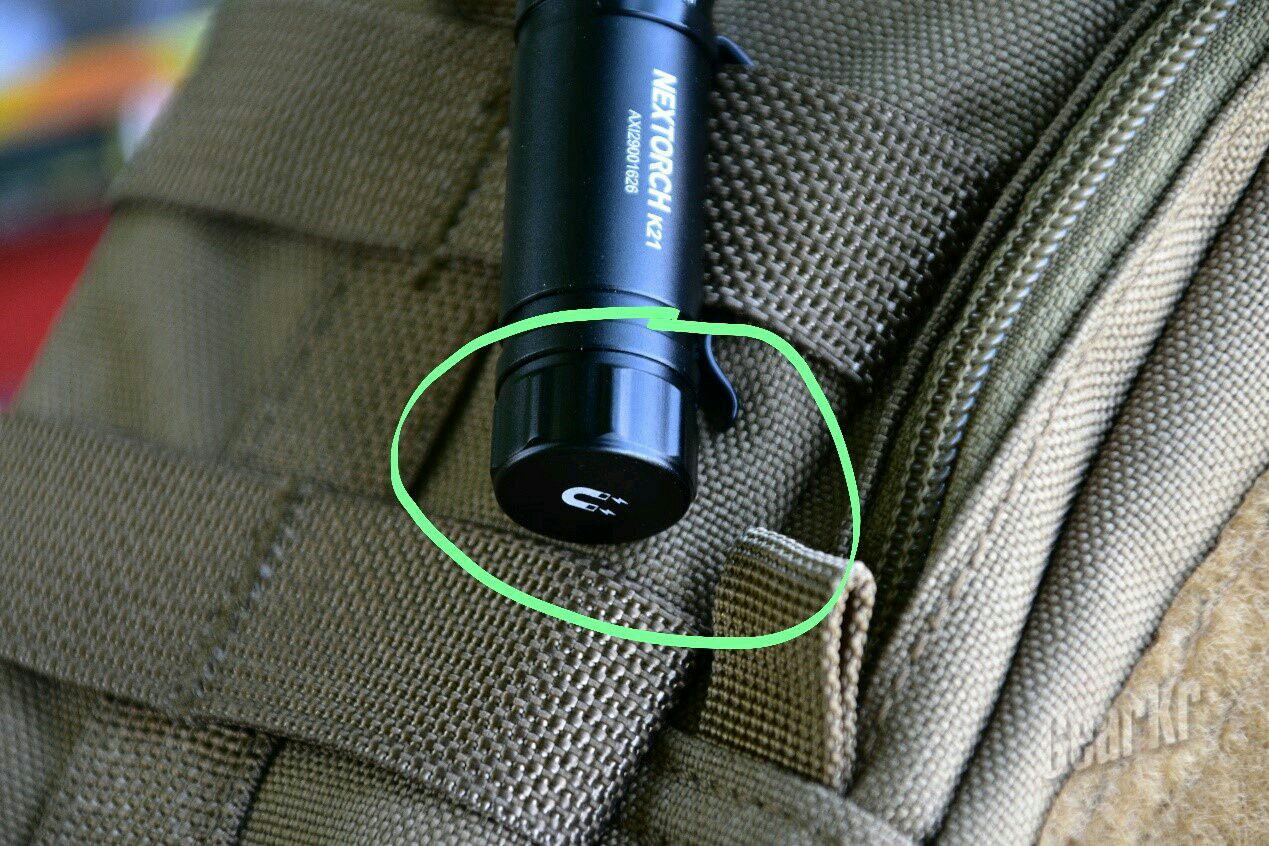 K21手电的不同之处,在于手电上的抱夹有反向设计由此可以发挥更大的作用,首先拥有一些一些手电正向抱夹的作用如在molle织带条上的固定
