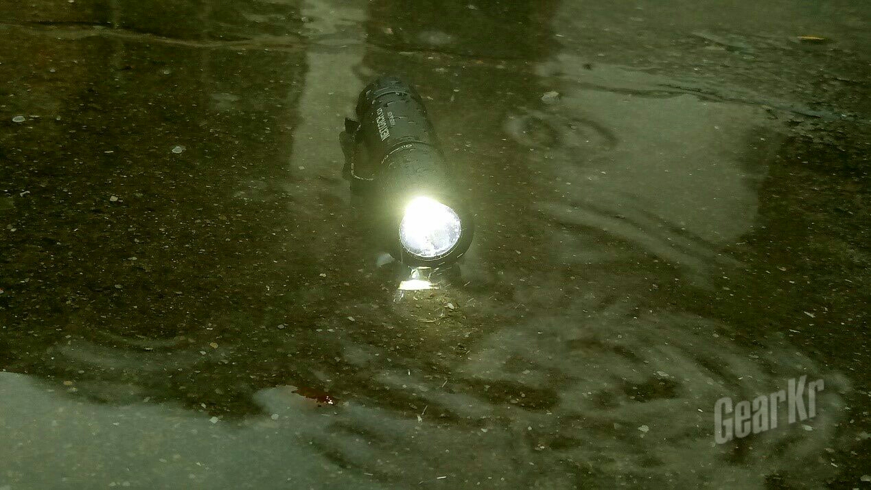 接着来测试下手电的防水能力,官方的手电数据的防水等级是IPX7,水下一米防水,笔者今天起床时候,刚刚好碰到天上下大雨,于是把手电开着放在地上淋了一个小时,