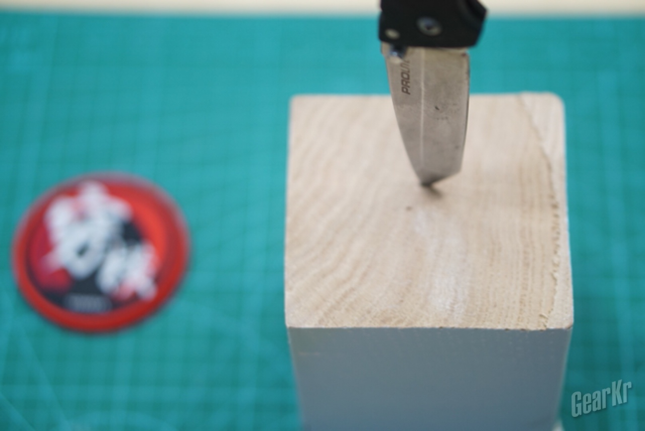 再后来连木头都砍,看刃以后依旧没啥变化。但是不知道啥时候刃的中部有了一个白点,摸上去还挺深。耐操不等于无敌啊。