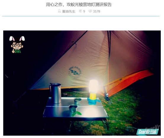 \n刚认识GearKr的前两年都是小打小闹,真正改变我人生轨迹的时间是2015年6月16日。我在写这篇营地灯的测评时,好像遇到了一些麻烦,就是写文章的编辑界面貌似改版了,很多功能就突然不会用了,编辑好几次都失败,要么就卡死数据丢失,这就是要重写的节奏吖。因为当时是萌新,不像老司机们都是文档或者印象笔记上写好再贴到网站上的,所以写一半没了实在是把人搞崩溃了。当时在QQ群里找到了管理员老江,并加了他的微信,然后非常耐心的教我怎么用。我们还聊了下网站操作界面的交互,老江也很认真听取了我的意见。从那天起我就觉得GearKr是个非常重视用户和对用户负责的网站。这篇测评交了之后,老江就邀请我加入了测评团,认识了各路的大佬,这些都是非常有趣的玩家老炮,对我现在的影响非常大。\n </p >