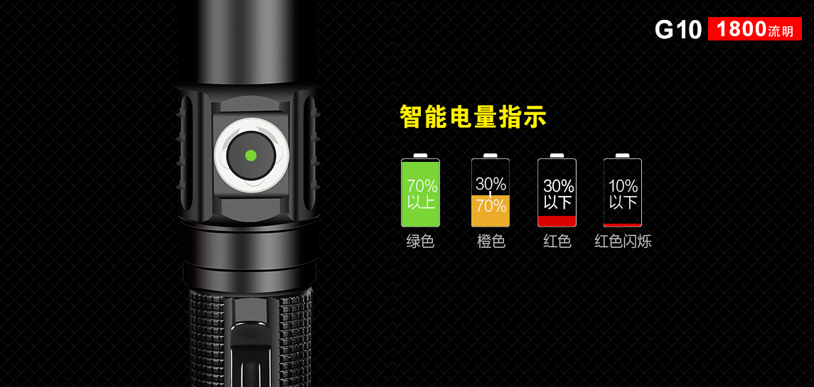 G10共有低、中、高、极亮四个照明模式,每一档都可提供不同的需要。