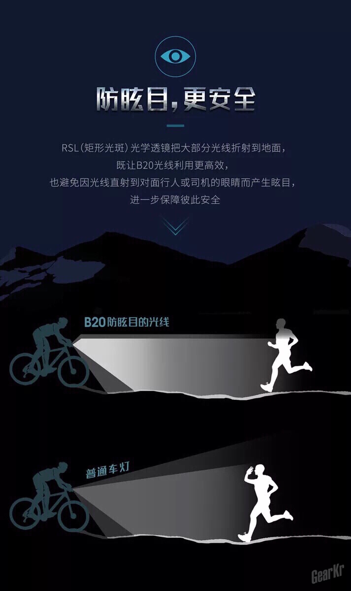 在呈现夜晚使用情况之前我想解释一下为什么纳丽得的B20我要称它是专业的,这里我来解释一下:别的品牌的骑行灯号称是为骑行设计,可能照明层面上没问题,亮度足够,也有续航,但是往往忽略掉了一点就是当我们骑行过程中,我们的照明设备往往会对对面的车辆和行人造成影响,也就是我们俗称的“远光狗”!