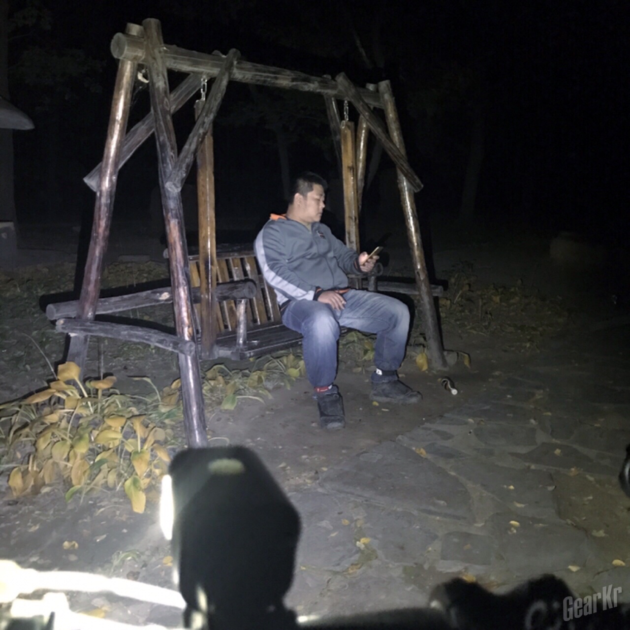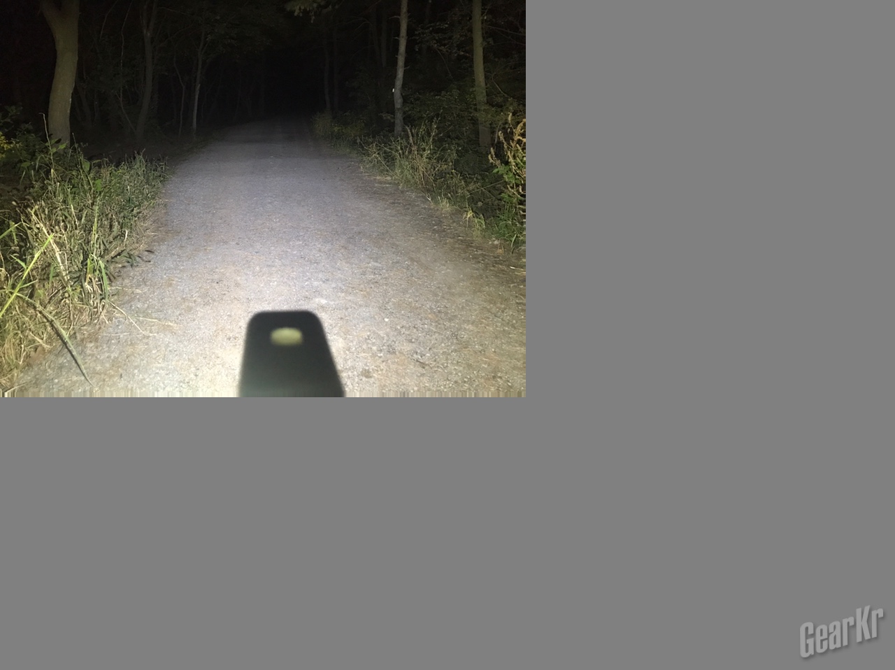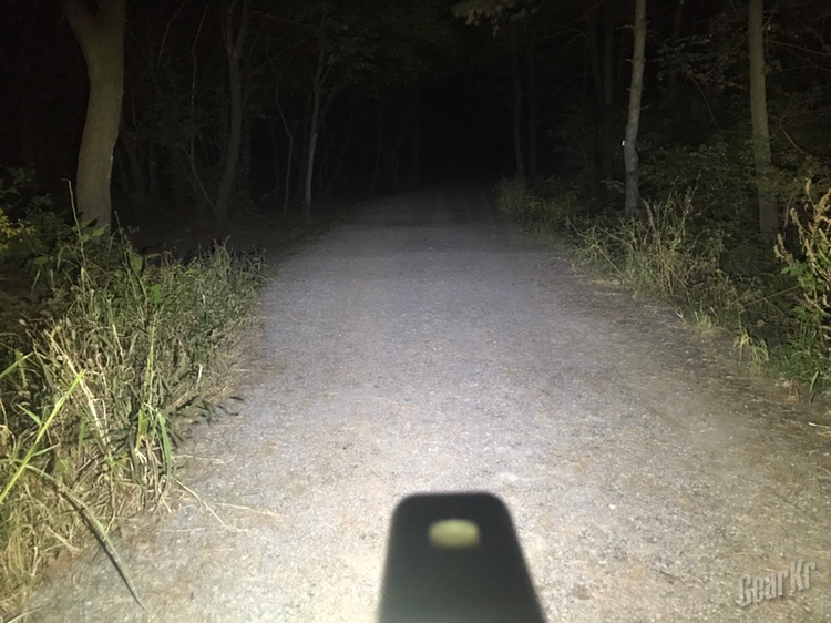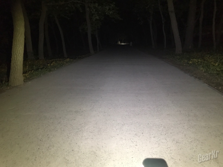 夜晚在山里使用,可以看到灯光不会像战术手电那样有十分集中的一个大光斑,而是十分均匀的灯光散布,两侧也同时兼顾到,虽然极限亮度不是那么特别高,但是绝对是够用的。