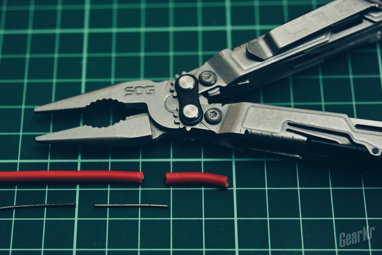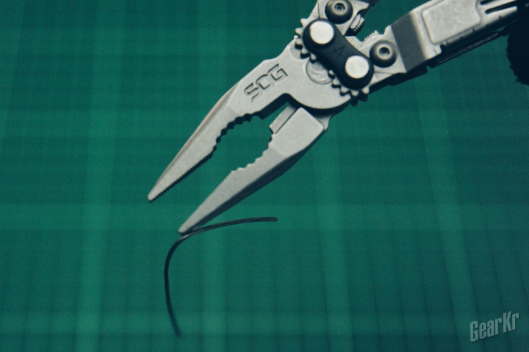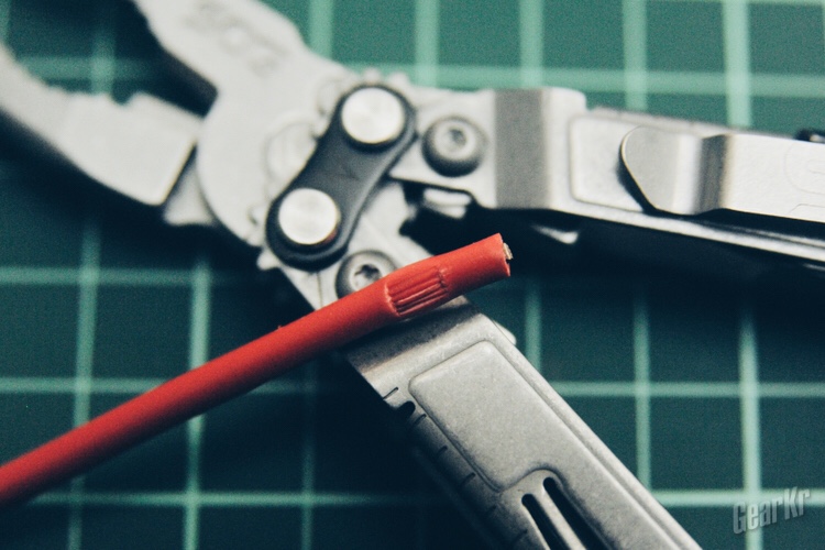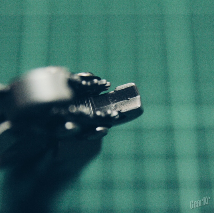 再回到具体功能,钳口功能包含尖嘴钳头、螺栓/螺母夹、软/硬钢丝钳。钳头做工精细、咬合紧密,钳子整体的开合阻尼力度恰到好处;螺栓/螺母夹处理常规松紧螺栓/螺母的功能可以胜任,当对付顽固锈死的螺栓/螺母便显得力不从心,毕竟尺寸小巧,不利于持握发力;软/硬钢丝钳表现良好,对付一般的铁丝电线不在话下。钳头还具有一定的磁力,能够吸附起质量较小的铁制零件。