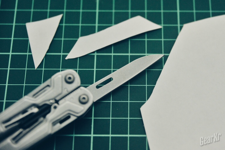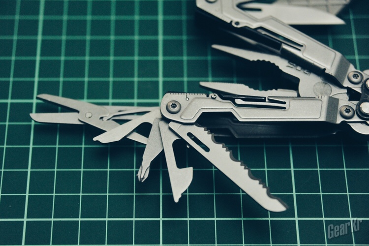 经过分别使用,小刀的锋利度可以接受;剪刀只适合处理细小的线头之类,笔者使用它裁剪一寸照,结果有些粗犷,原因在于剪刀的厚度相比瑞士军刀里剪刀的厚度要厚很多;开瓶器nice;锥子够硬够锋利;十字螺丝刀nice;小一字螺丝刀如果能够再小一点,就可以搞定眼镜上的小螺丝了;开罐器nice;钩刀和锯齿刃刀处理普通绳索不在话下;三面锉刀也nice,锉刀顶端设计有凹槽,应该还具有弯折铁丝制作钩子的作用。