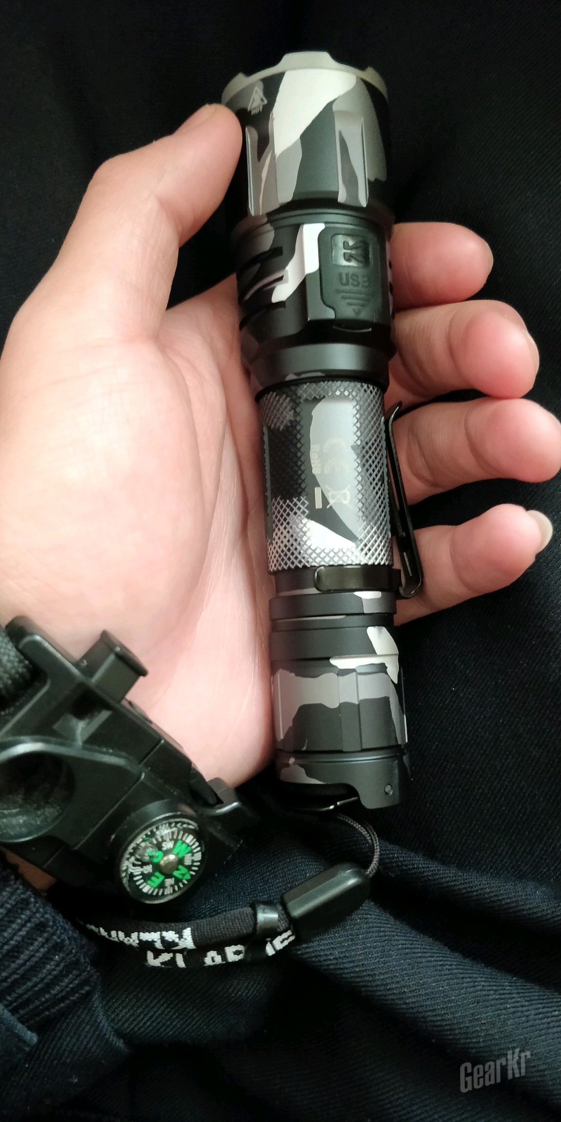 该手电搭配着城市迷彩外观十分不错,手电2000lm的高亮度满足日常的需求,多种亮度可以适应复杂的环境,多种模式可以在任何情况下犹鱼得水,在抓捕等关键时候也不会掉链子,高强度的攻击头也是一个好帮手,遇到危机情况可以祝你一臂之力,手电上手的舒适度也好,防滑效果也十分不错,所有这是一款值得推荐的手电,特别是对于有着高要求人来说。