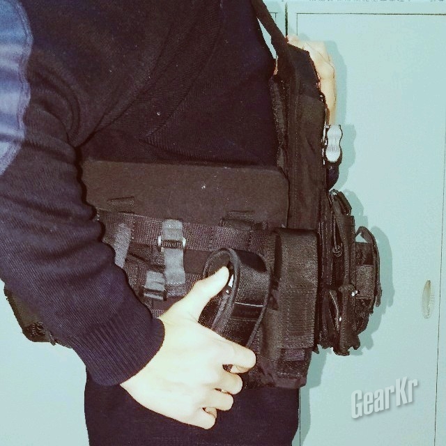 该为穿戴效果,通过魔术贴也可以实现快速取出效果。