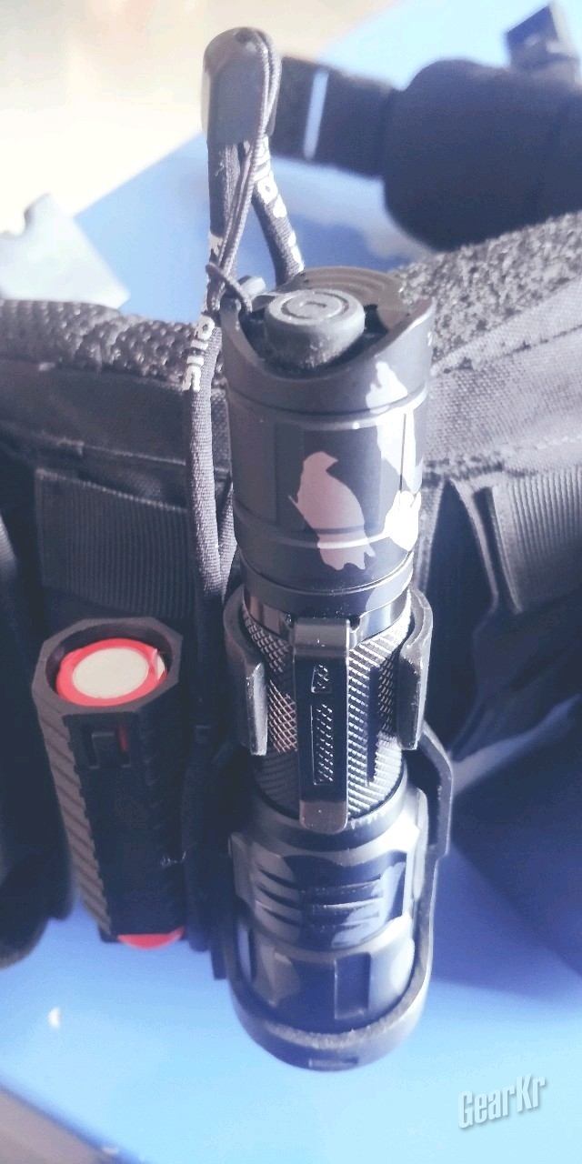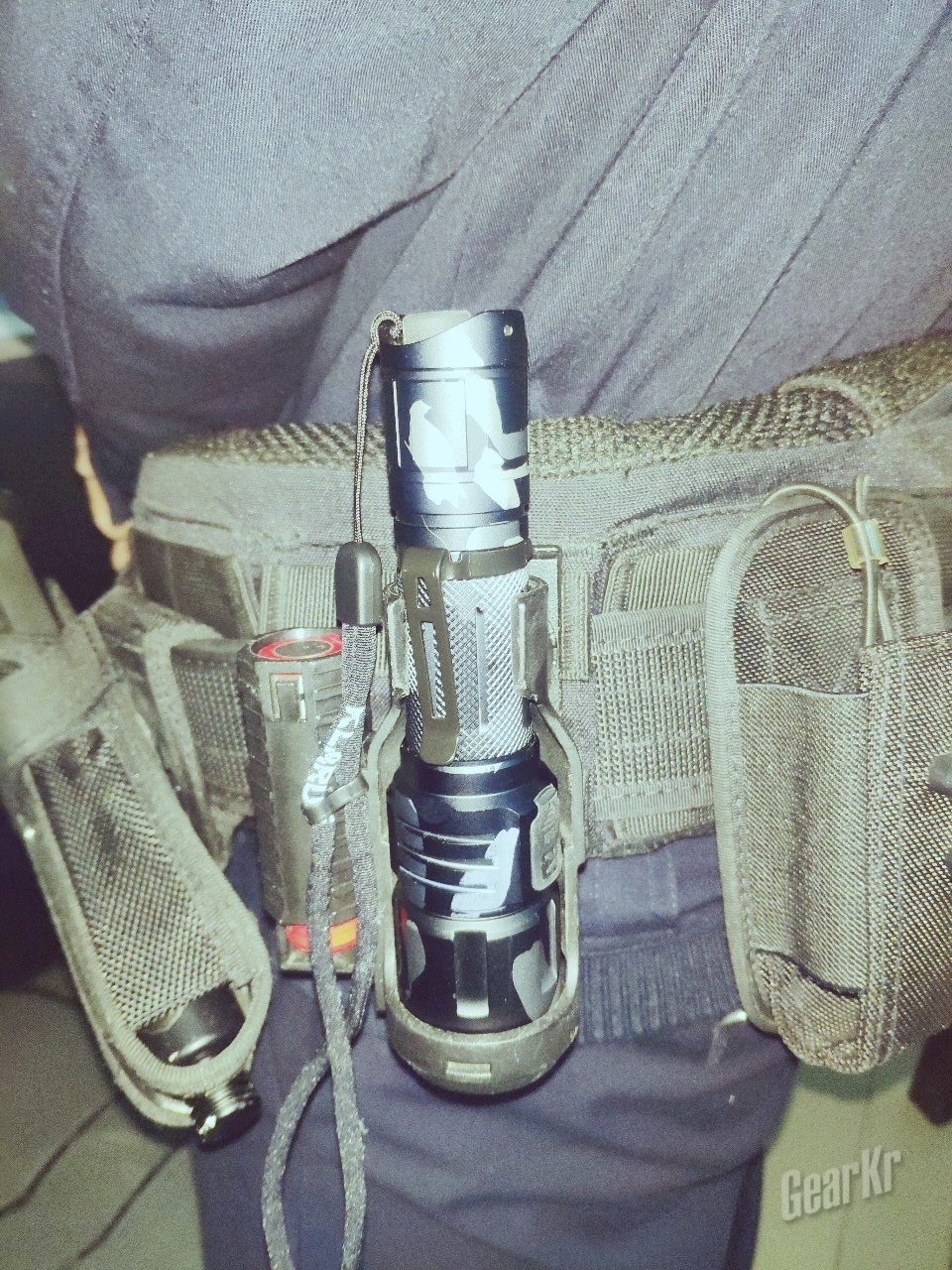 该手电也可以穿戴上molle所以说可以适应非常一大部分的载物系统。