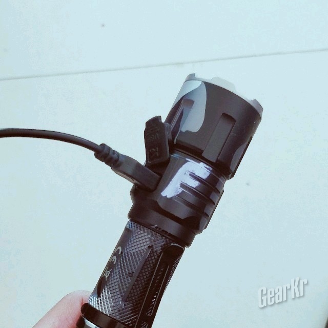 usb充电口采用防水防沙保护盖。非常好的保护好手电充电口。