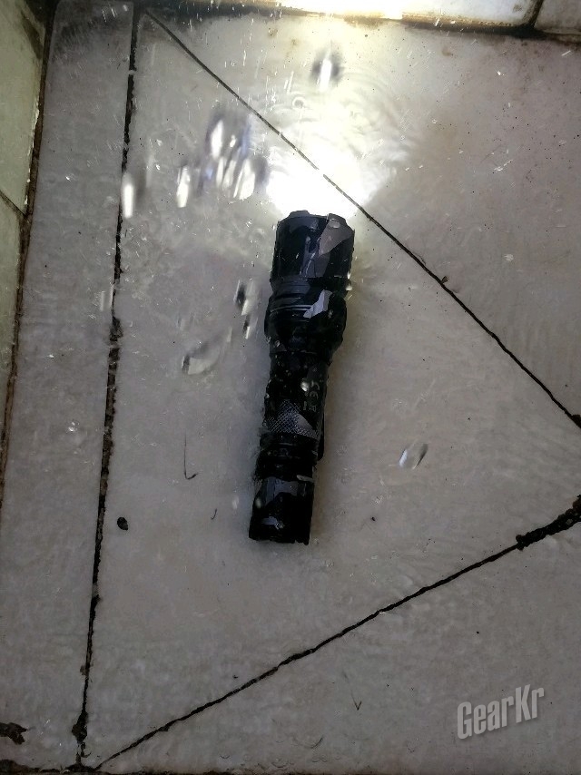 防水等级是IPX8级 水下两米防水能力,可以在暴雨中使用。 图为在水龙头下照明模仿暴雨情况
