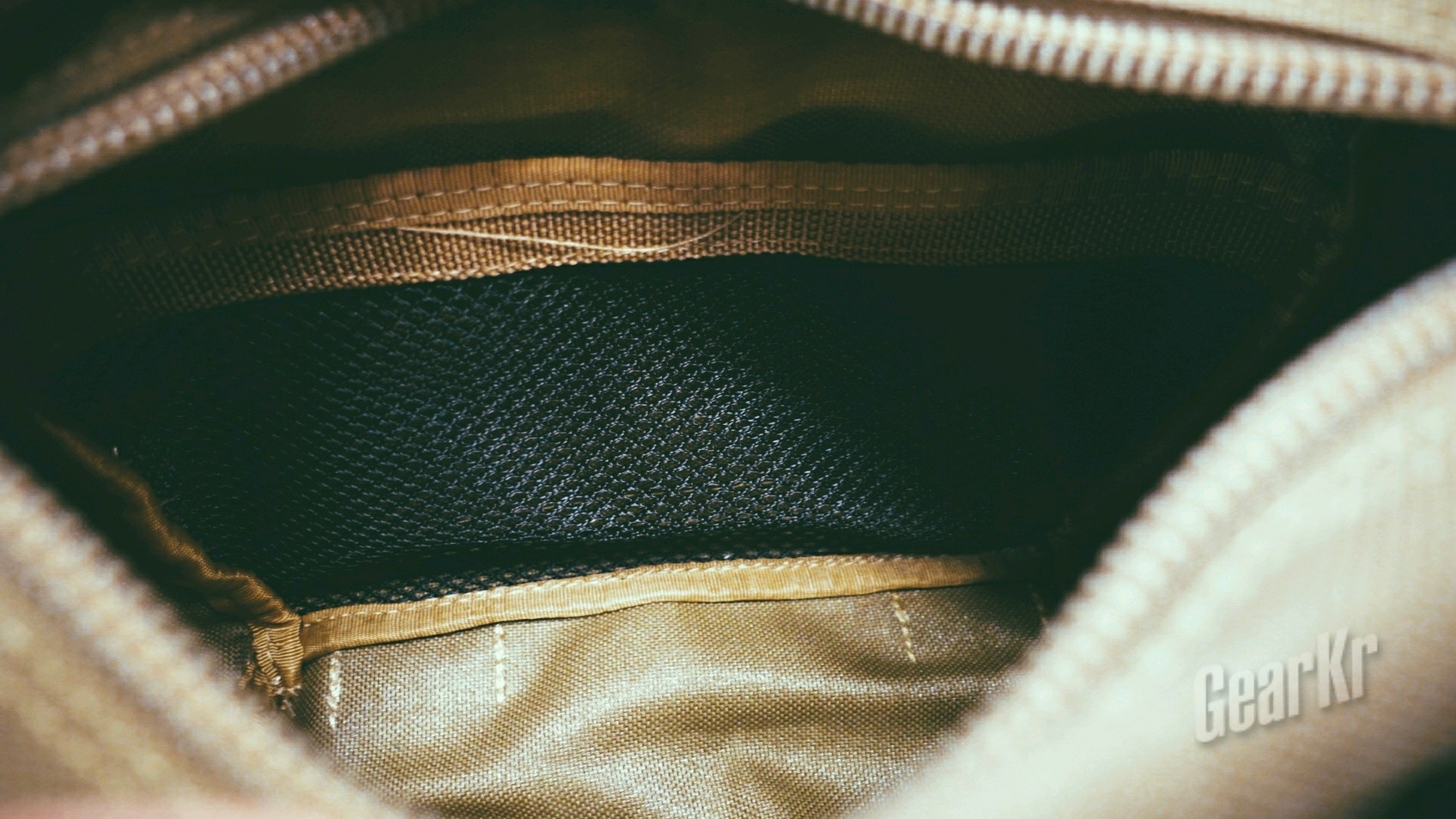 因为这款包本身是以腰包来存在设计的,所以说主带的空间并不能算得上是非常大,但是也算是将将够用作为一定的牺牲,主置物袋没有进行过多的分层,只有一个简单的贴边网格可以放一些比较重要且薄一些的东西,剩下大面积的主置物袋空间可以放一些体积稍大的东西,比如我展示的gopro等。
