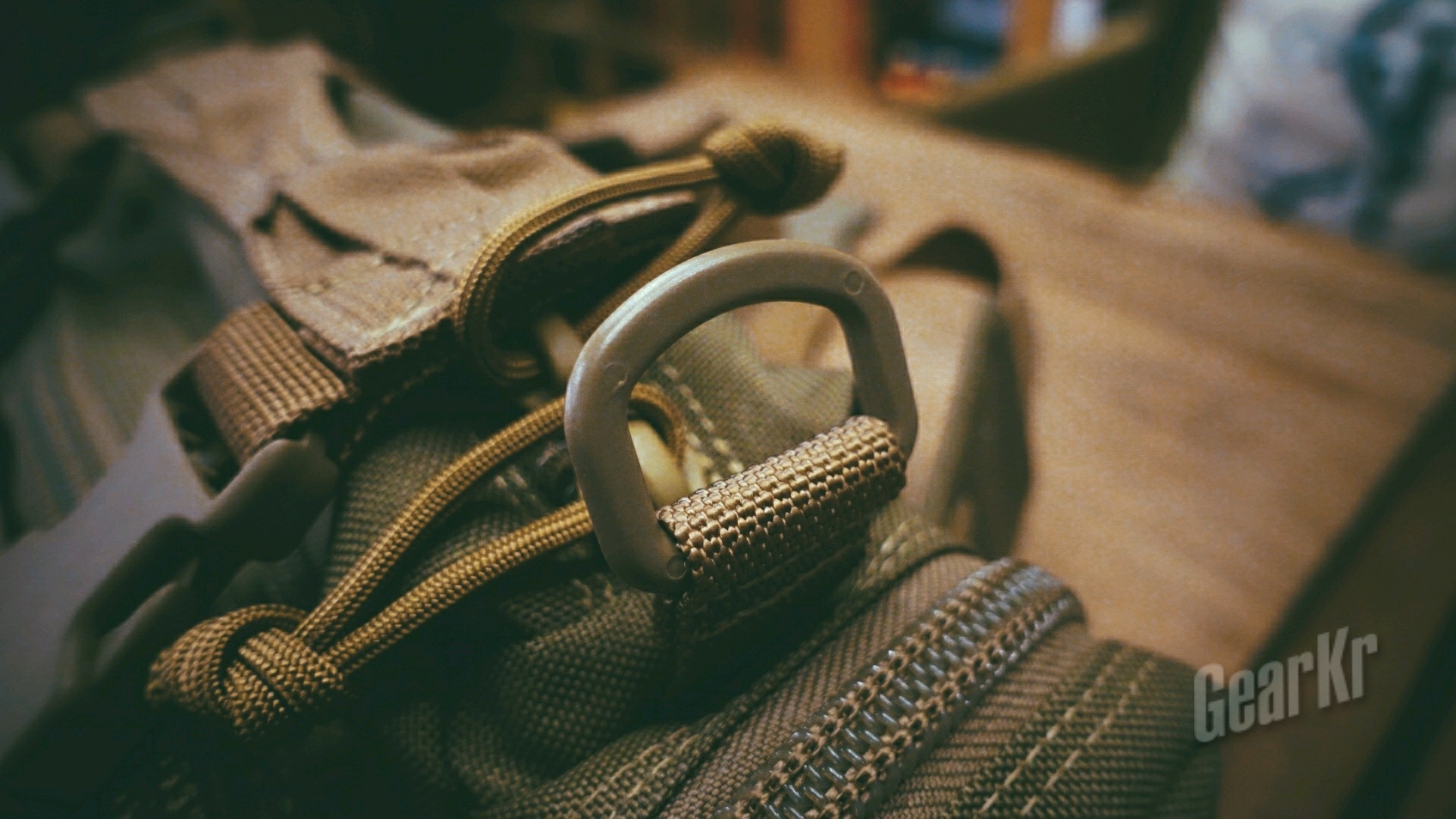 顶部也有预留d字扣固定,但没有提供额外的连接物,但是个人也可以根据实际需要扩展自己需要的背负使用方式。