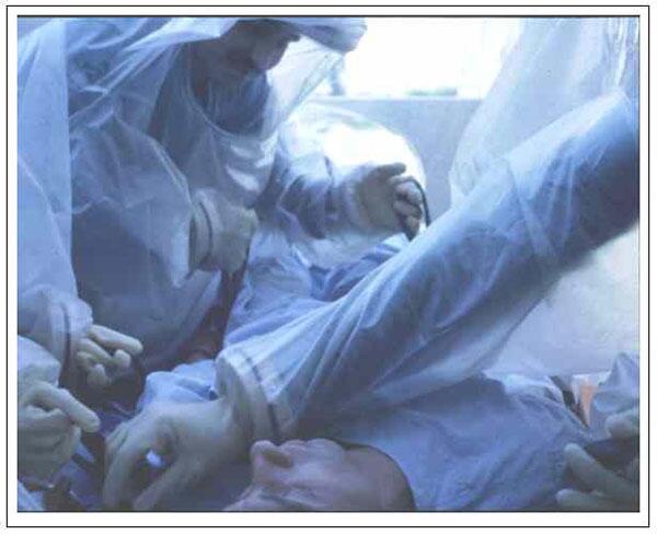 使用雷卡防护服和气泡担架的航空医学隔离小组,该图来自《Air Evacuation under High-Level Biosafety Containment: The Aeromedical Isolation Team 》,美国线上医学图书馆
