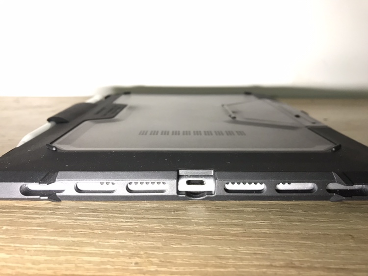 收到gearkr君寄来的肥熊iPad保护壳已经二十多天了,经过这一段时间的使用,把使用感受总结一下,个人观点,仅供参考,第一次发帖,APP的发帖功能还不太会使用。 整体外观。拿到这款保护壳的时候,明显感觉这个壳子分量十足、厚重,整体结构上是由橡胶边框和硬质塑料背板组成,四周的橡胶非常厚,棱角分明但是做倒角处理,给人感觉稳重、硬朗,外观方面符合户外保护壳的产品形象。充电口,喇叭口,麦克风口,3.5mm耳机接口,摄像头孔,音量开口,电源按键的开孔位置都对得比较居中,不影响使用,尤其是电源按键挺灵敏的,轻轻一按就行,这点比较出乎意料。