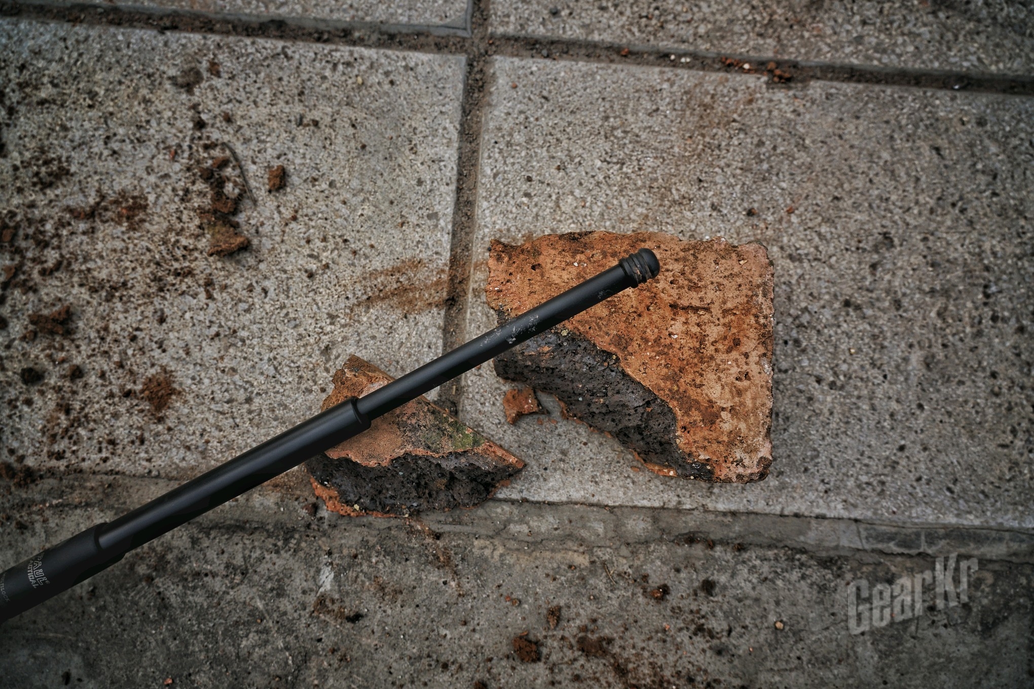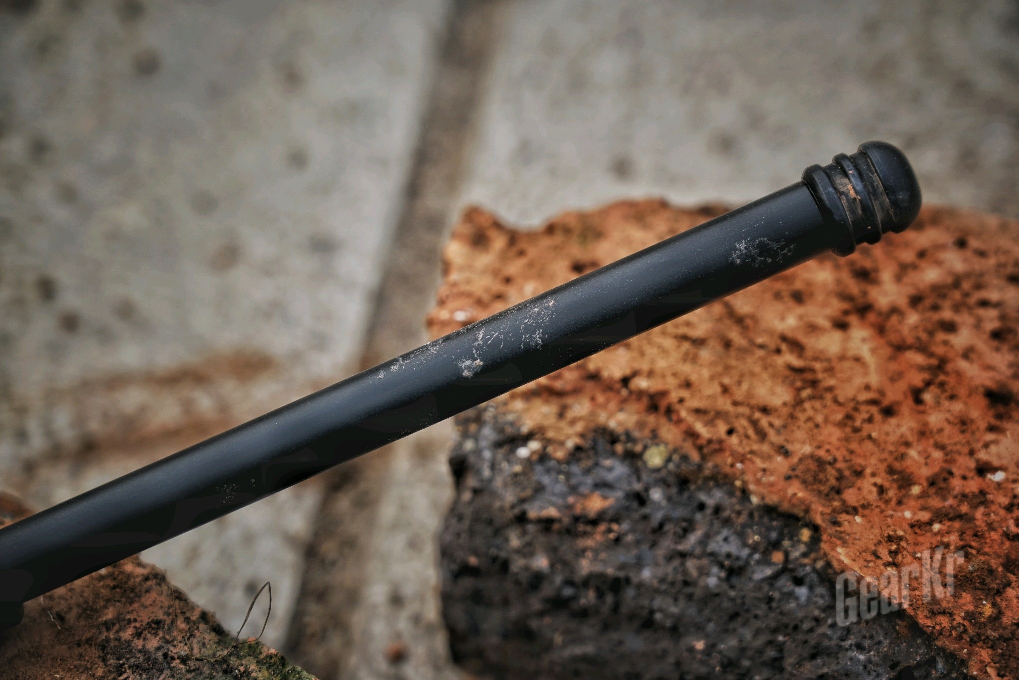 最后还是开一下砖,除了涂层有点刮花以外,能够正常的出棍收棍,棍头打击处也没有任何的变形。
