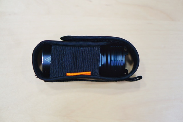 下来我们说说这个不足吧,这款手电附赠的这个包,既然送了,那么能不能走心些。这个是我塞进去的极限了,因为材质太硬的缘故,大家可以看见,上下不挨底,对我来说感觉有种随时掉出来感觉。其次是这个家伙如果不穿手绳塞进去还不太好拿,完了背面的带子是缝了一个扣,只能让皮带穿过去,而不能装在背包上或者是背心上或者是其他东西上,只能别腰里。。。然后不好的是只能拿在手里,没有背夹扩展的余地,没有吸铁石,可能在用的时候非得占一个手了。其余的性能,对于一个400出头,带电池,且3000流明的日常使用。绝对让你成为黑夜中比战狼还亮的那颗星。