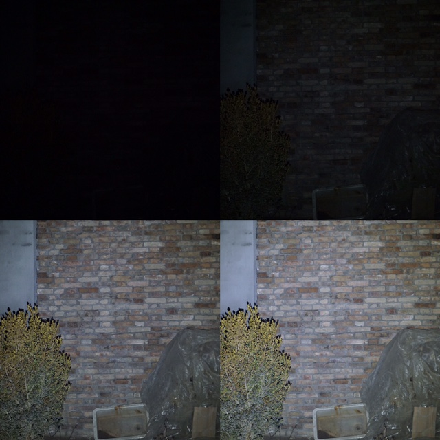 黑漆漆一片。。。没错这个其实可能是我快门速度有点快。为了保证这个一致性,我用的手动模式,下面3张的速度和这个一样。这个是LOW挡位,30lm的情况。啥也看不见。其实是搞着不黑的模式。