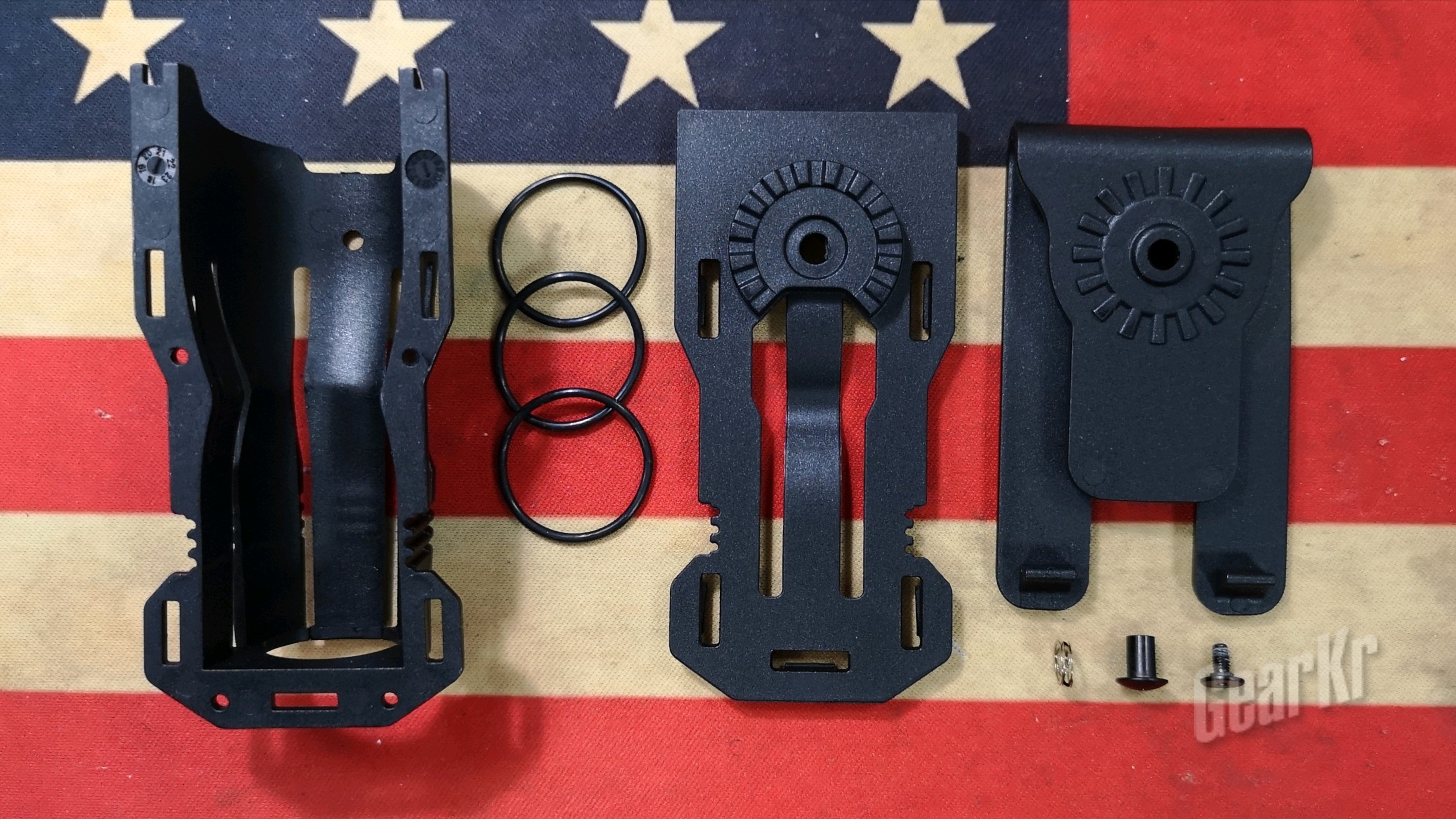 这只V6快拔电筒套本体由三大部分组成:外套罩壳、快拔阻尼板、腰带背夹。
