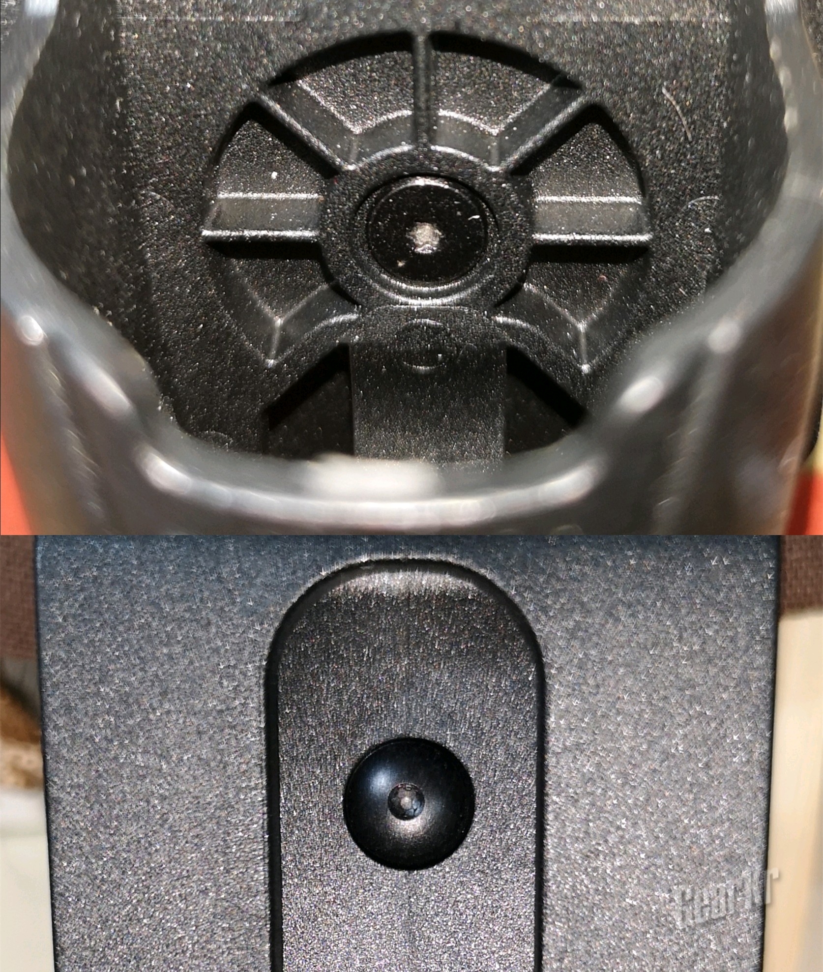 筒套本体与腰带背夹通过一组T8对锁螺丝连接,可以从筒套正面的一个小孔伸入星型扳手拆装。