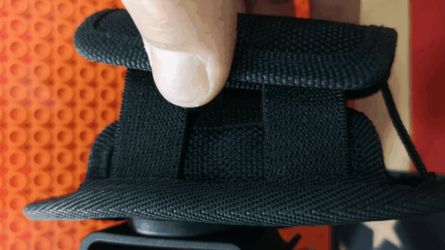 而奈爱筒套的背夹为一体式单片样式,宽度34mm,除了腰带外,无法在molle系统上使用,且防意外脱出挡钩设计得非常反人类(虽然防脱效果很好,但要取下它,实在是件磨耐性的工作……)