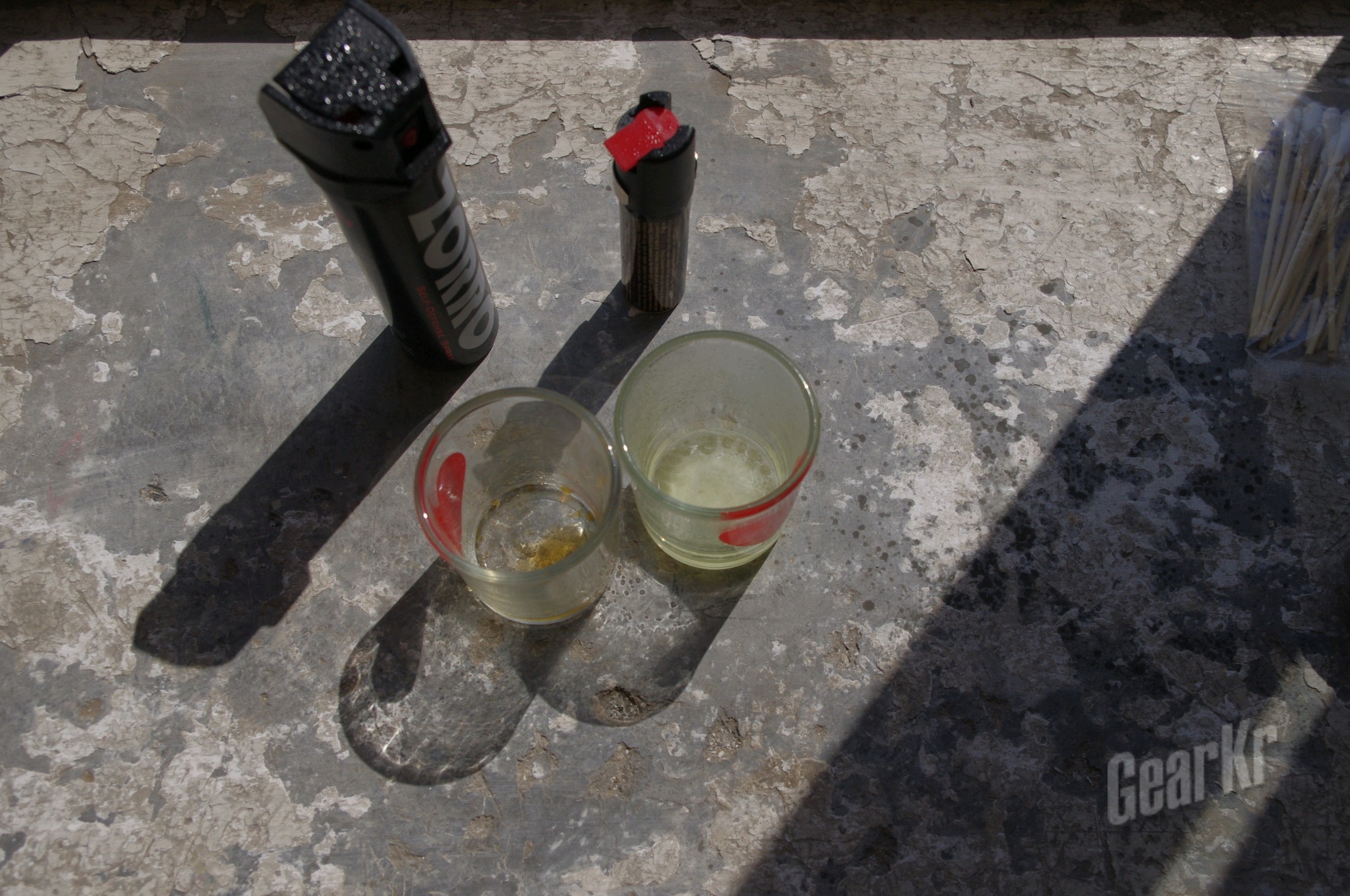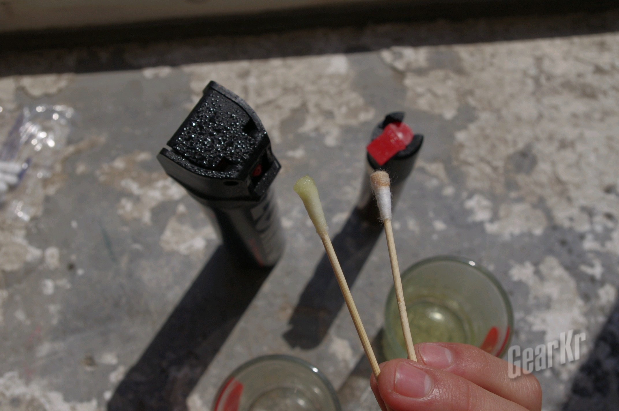 先从喷出的辣椒水开始,佐罗颜色更潜而且有刺激性味道,沙豹的味道较小,而且沙豹是边油性的更粘稠,佐罗就跟水差不多(左沙豹右佐罗)