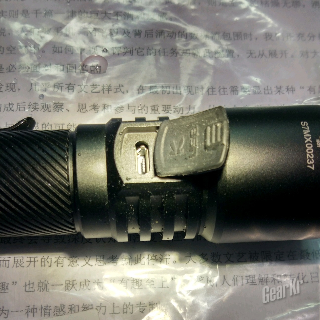 由于随手电附赠的电池位于电池仓,所以出厂时还有绝缘片