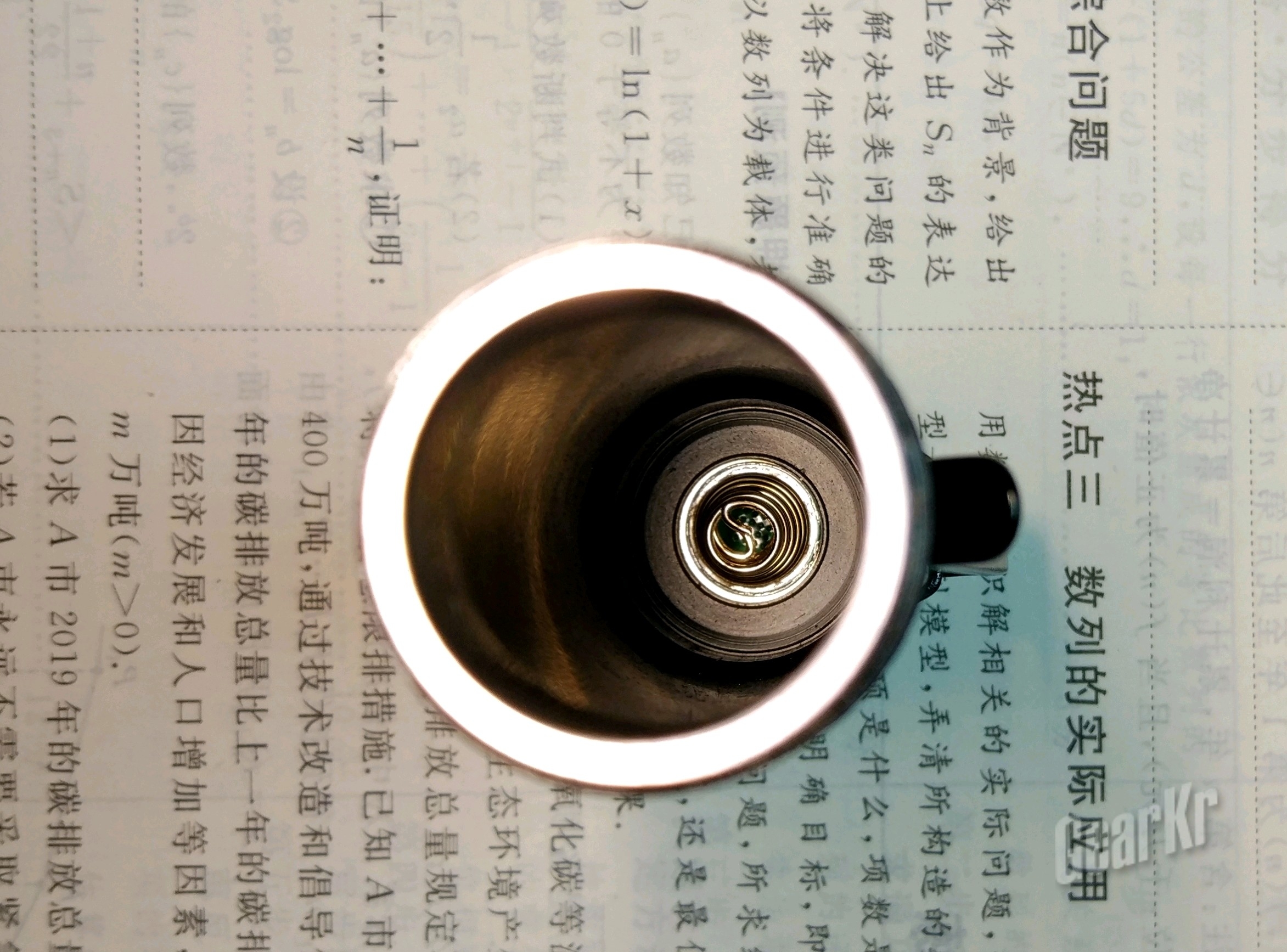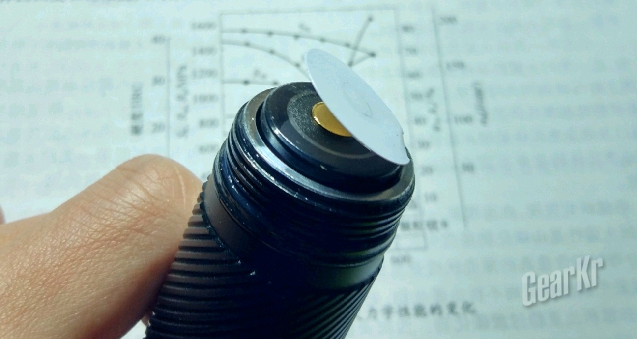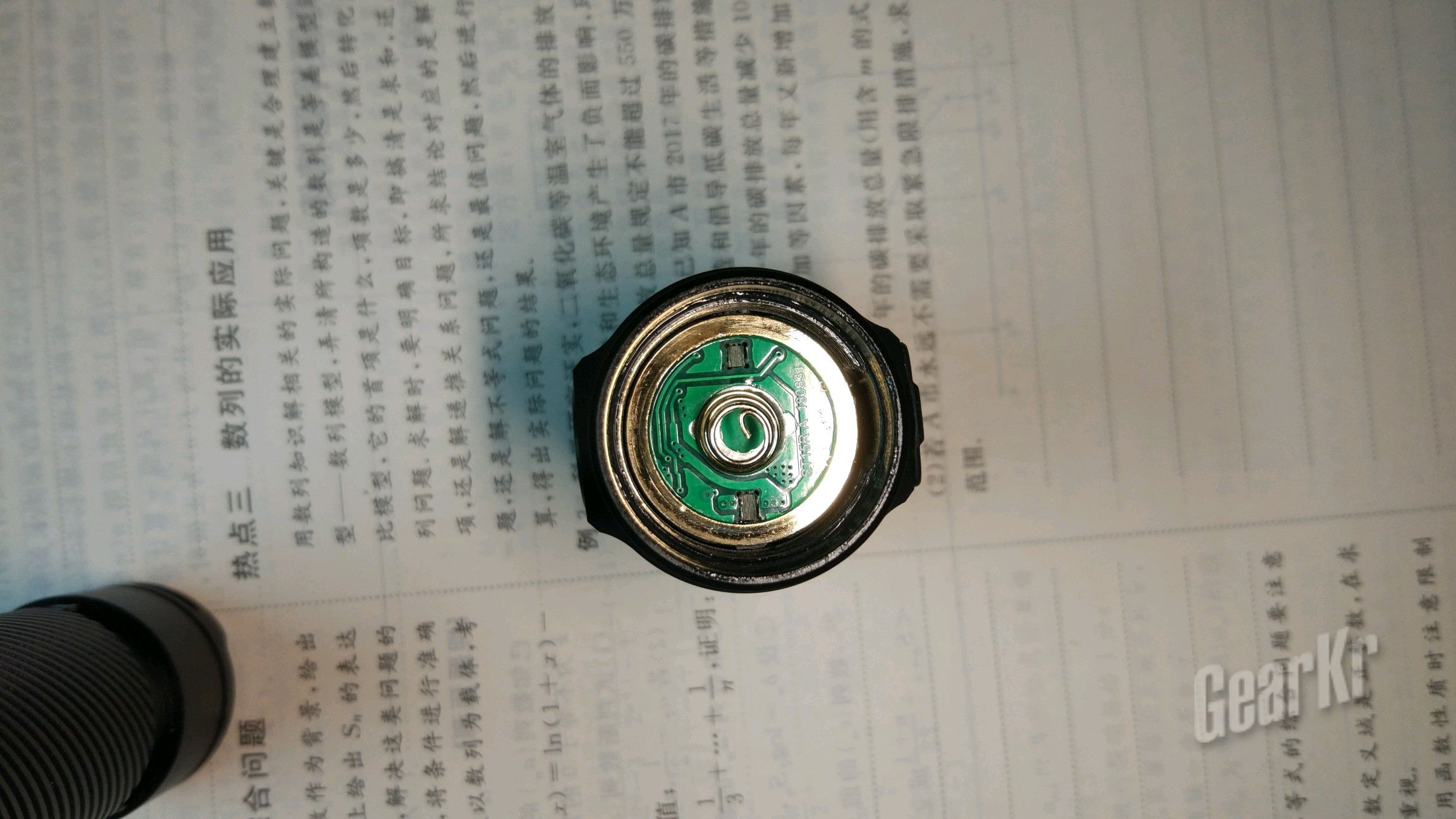 手电为双弹簧触点设计,端面导电。双弹簧触点的设计不仅能在手电跌落时对电池有缓冲作用,同时也能兼容正极为平头电池。螺纹口部分测量最小厚度为2mm,用料十分扎实,是我目前手里筒壁最厚的手电。需要指出的是,ST15R的螺纹在出厂时是没有润滑脂的,需要用户自己上润滑脂,不然长期旋钮的话会造成螺纹处的阳极氧化层磨损。