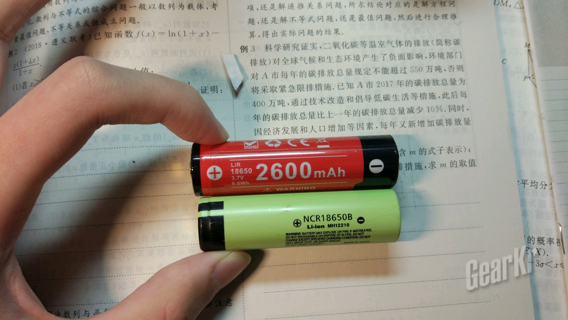 凯瑞兹ST15R自带的2600mAh电池与松下NCR18650B 3400mAh电池对比