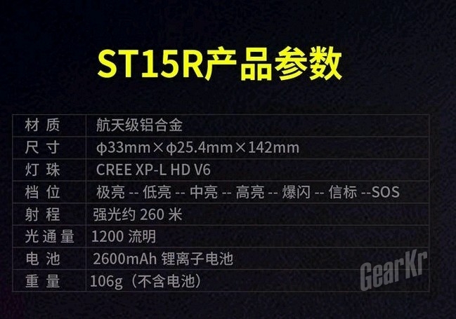 凯瑞兹ST15R可以说是相当有诚意的产品,做工和用料都是大厂风格,尤其是在300这个价位还能保持这个水准,还有相当丰富的配件,很难得,性价比很高,尤其是自带电池这一点很好,又省去了一笔开销,毕竟大部分厂商的产品都是不带电池的,对于一般用户来说比较蛋疼,支持USB直充也很方便。简单的档位设计使得操作学习短,可以快速上手,相比其他复杂的档位设计来说,更加可靠。就我个人感觉而言,ST15R基本没有短板,满分10分的话,我给8分,2分扣在泛光角度小和与logo对不齐的挂绳孔(这点真的逼死强迫症啊啊啊啊啊)。
