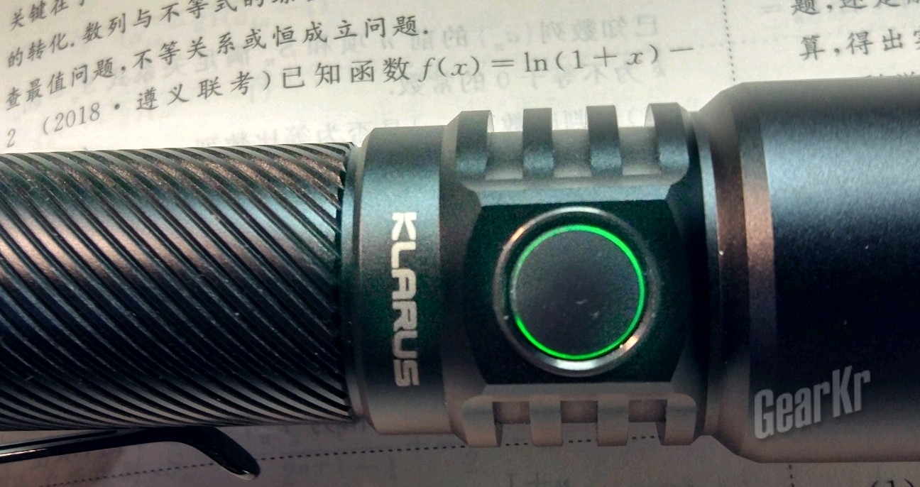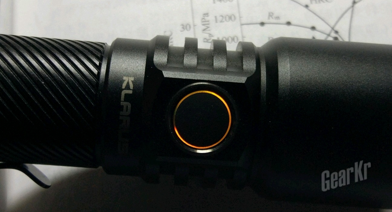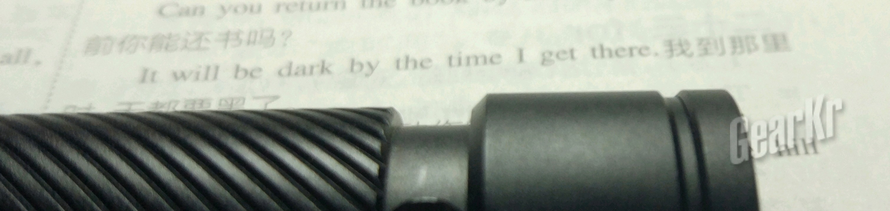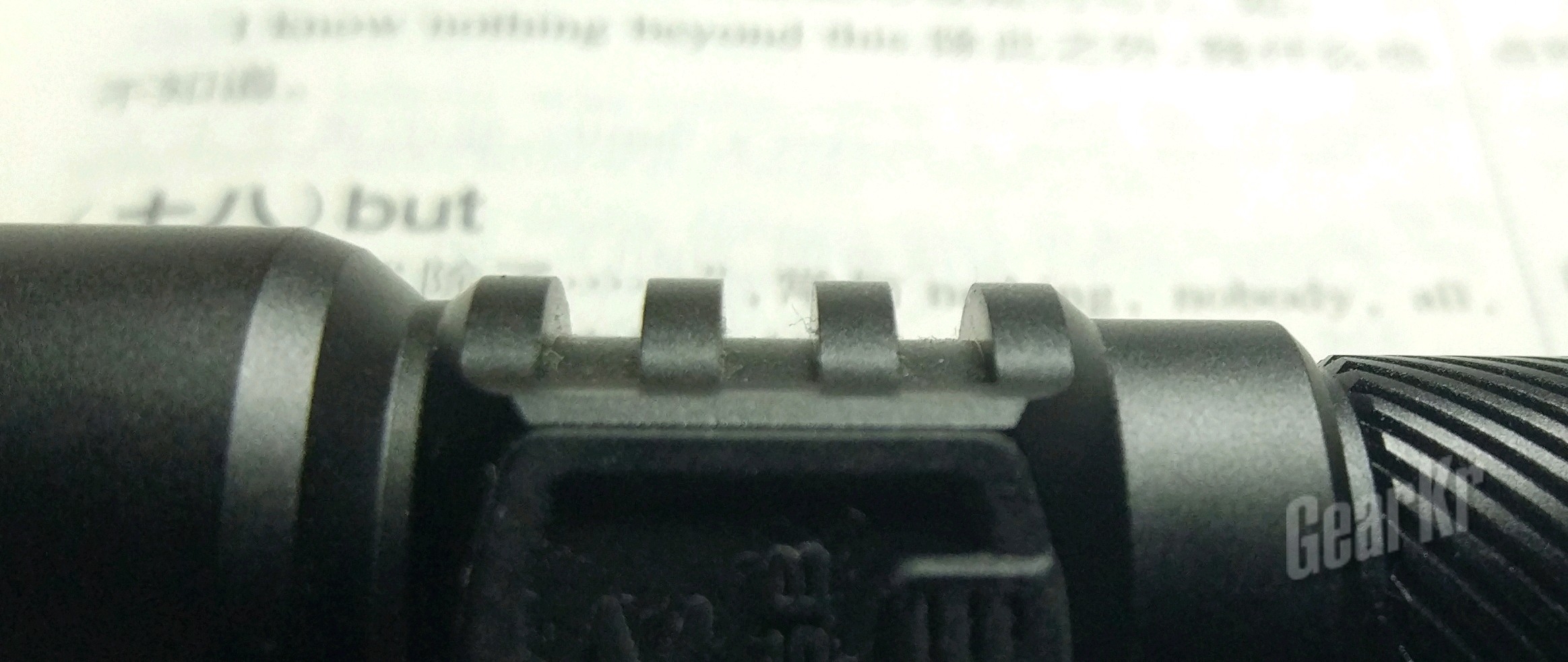 凯瑞兹的logo这次没有激光打标在防滑纹的位置了,而是挪到了侧按下方,手电型号则是印在了灯头靠近外沿的位置。