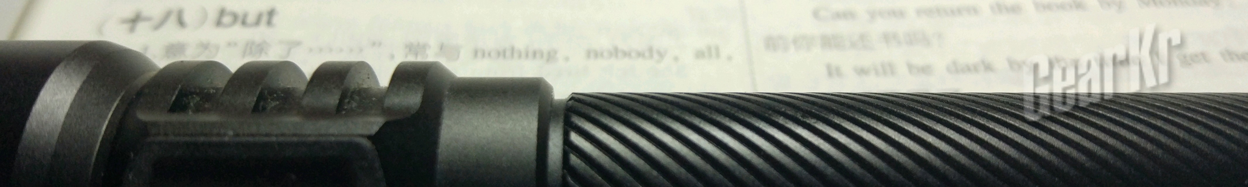 压环为不锈钢材质,相比铝合金更加坚固,跌落时对于手电的防护性更好,同时表面还做了喷砂处理,表面触感细腻,这在其他采用不锈钢压环的手电基本没见过。