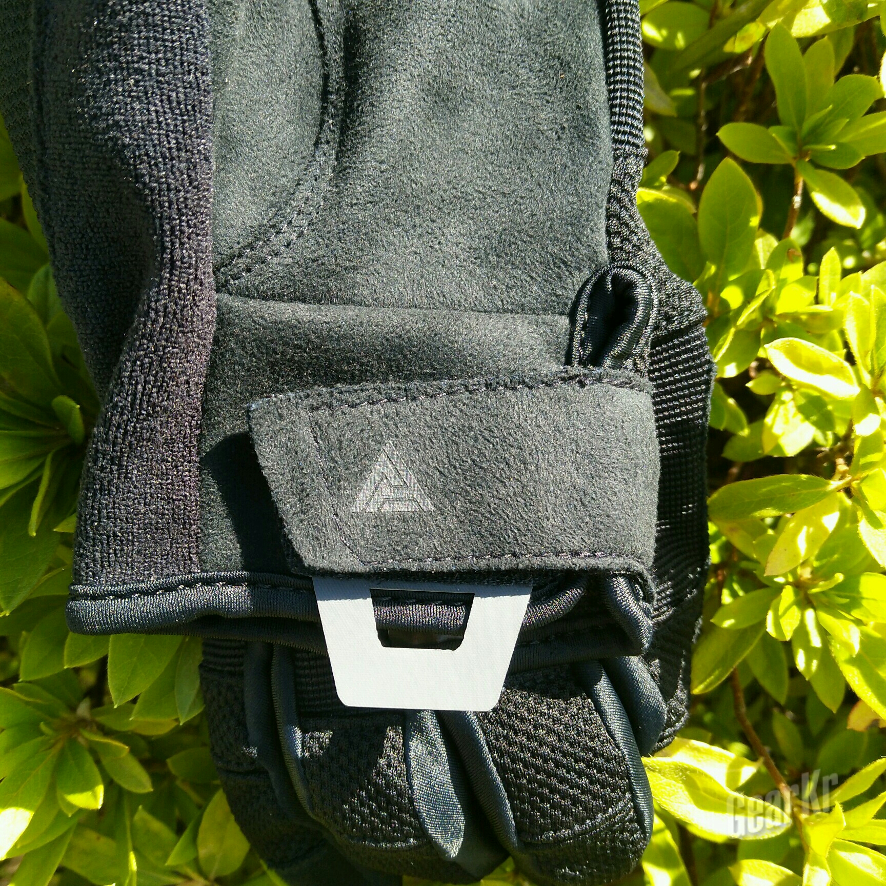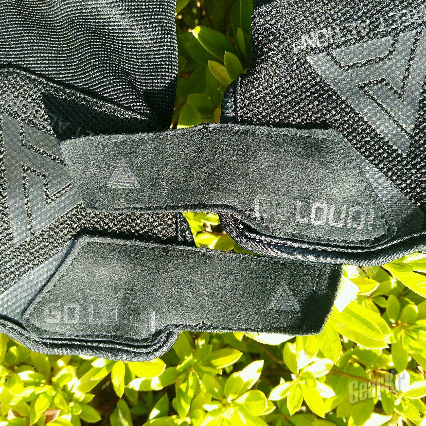 手背同样一个漂亮的logo,印花为手套提升了一定美观度。穿戴采用魔术贴的方式,可以调解松紧度,魔术贴部位有一个较小logo,延伸处是英文印花“GO LOUD”。