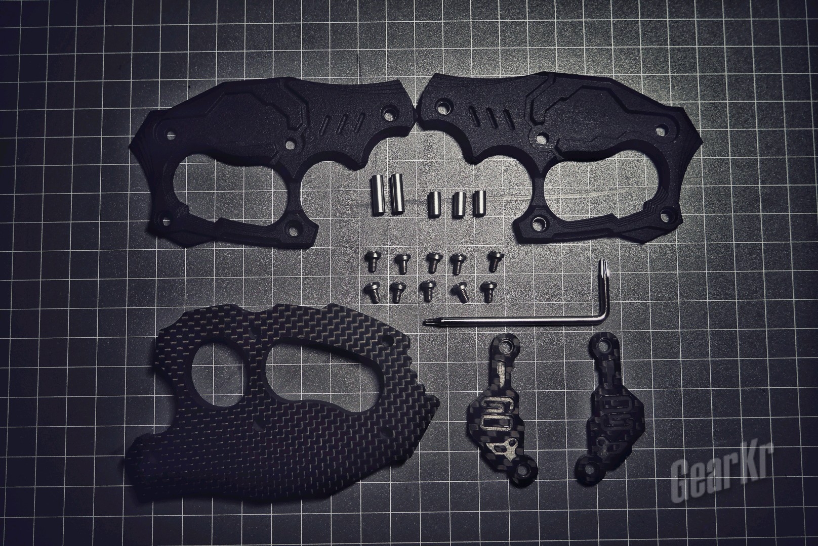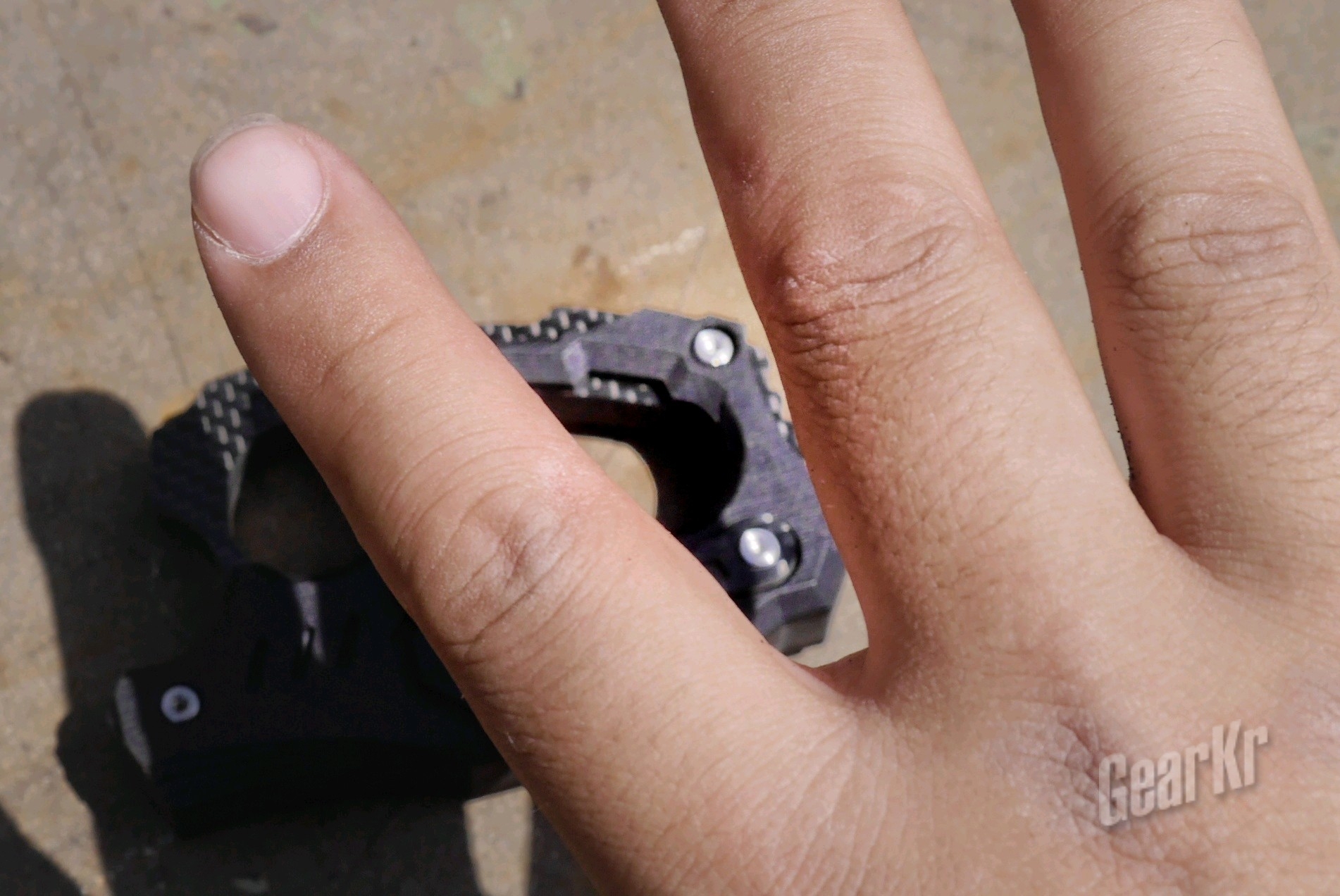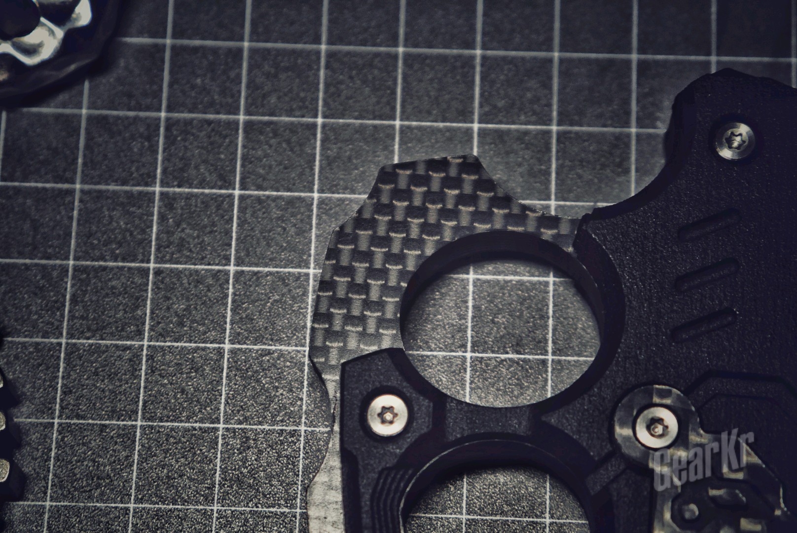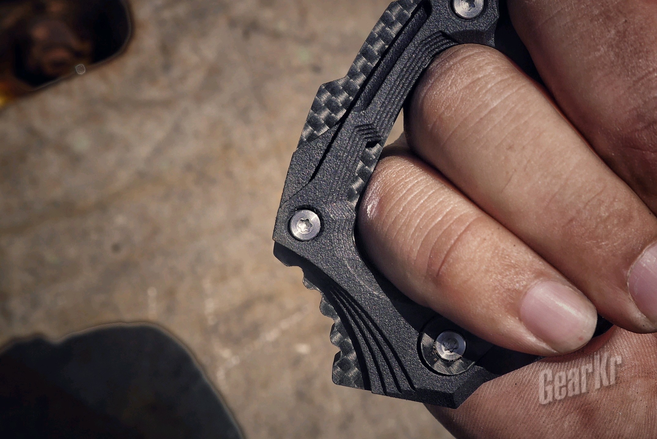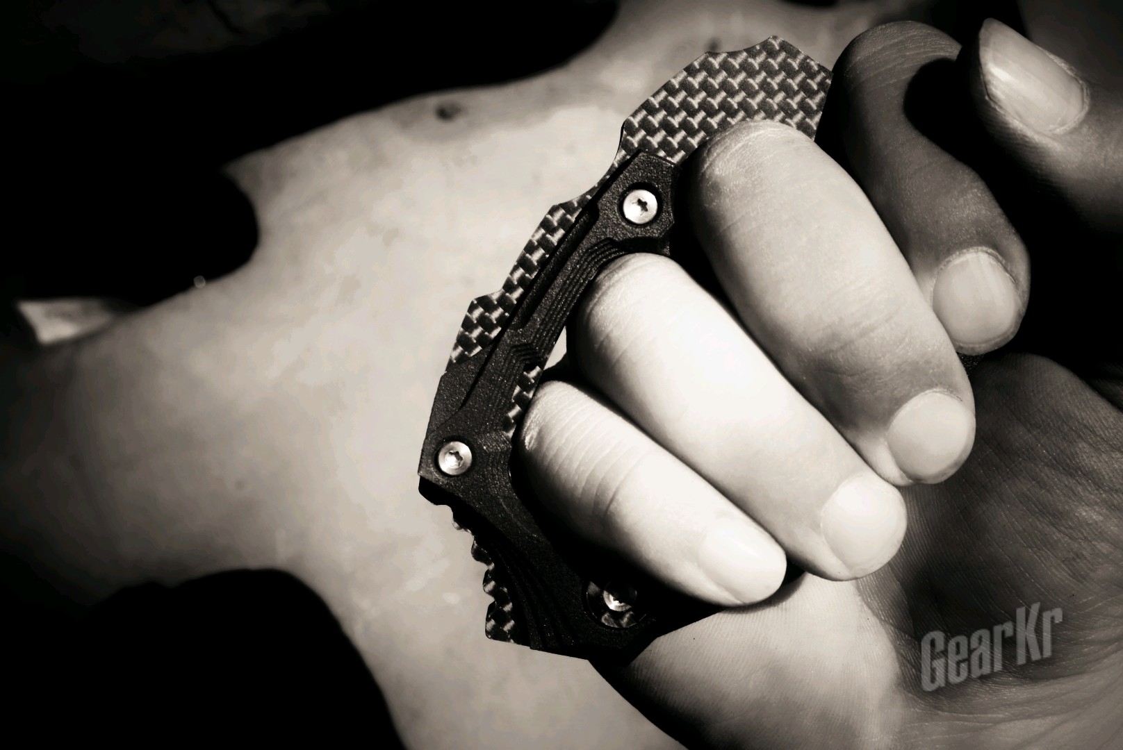 屠采用碳纤维搭配尼龙板的组合,使其在重量上要轻于传统的金属指虎。且碳纤维的材料特性在硬度与韧性也毫不示弱。