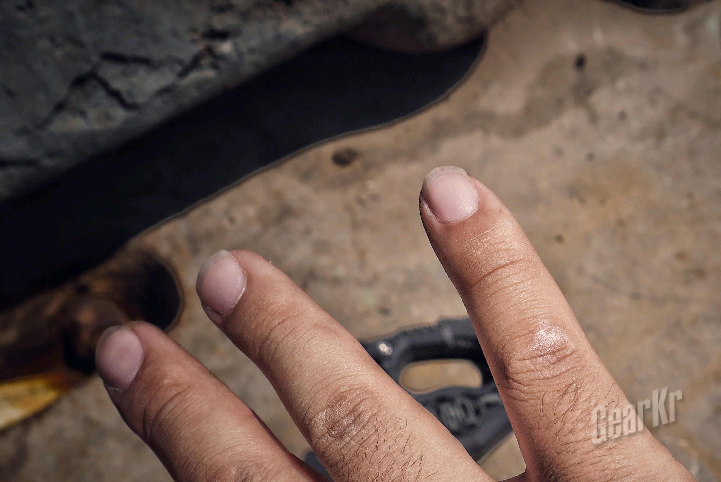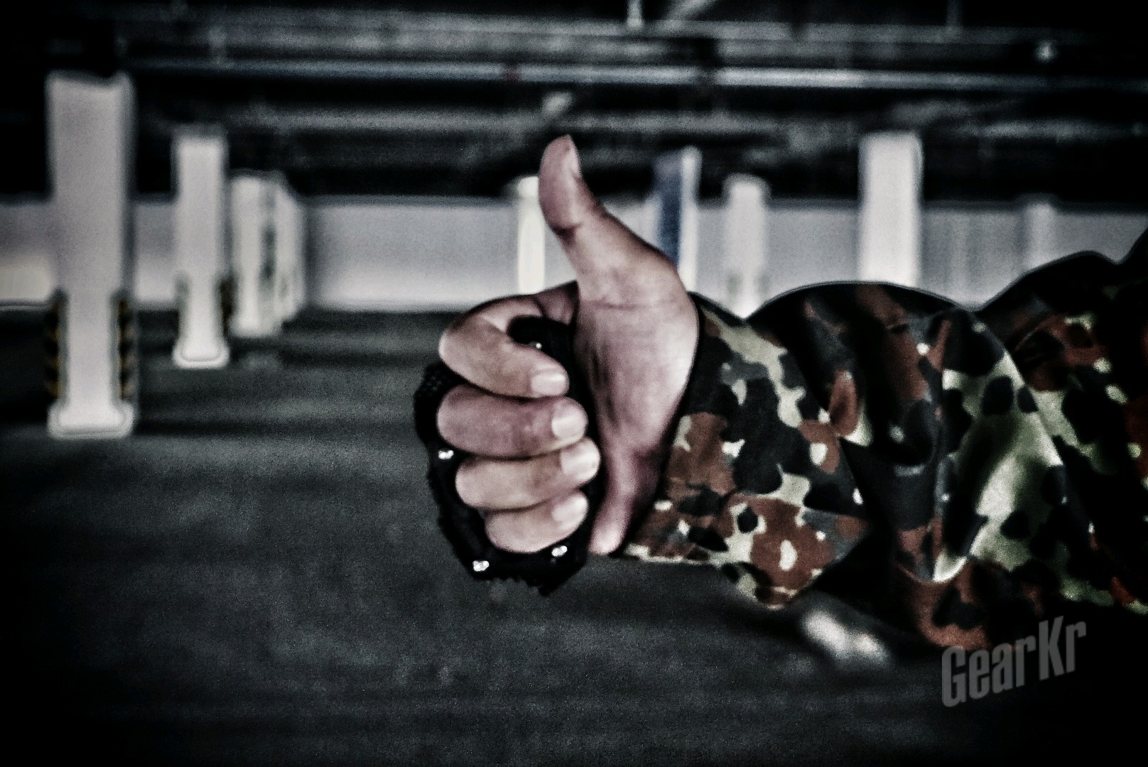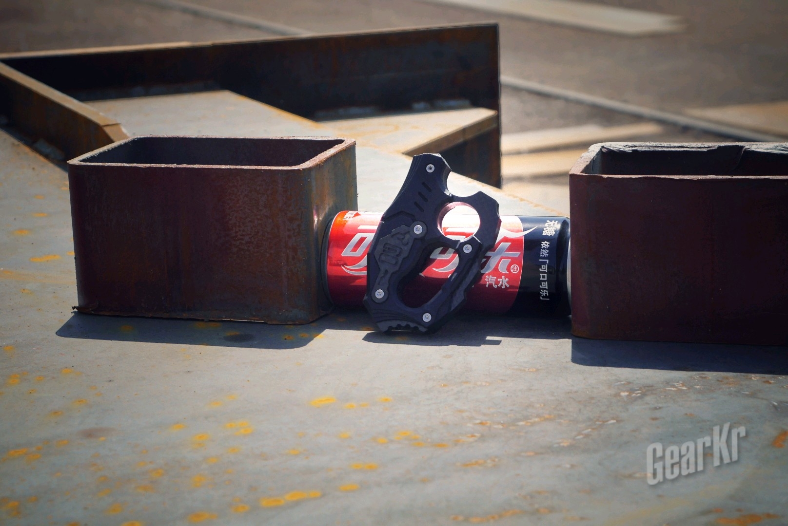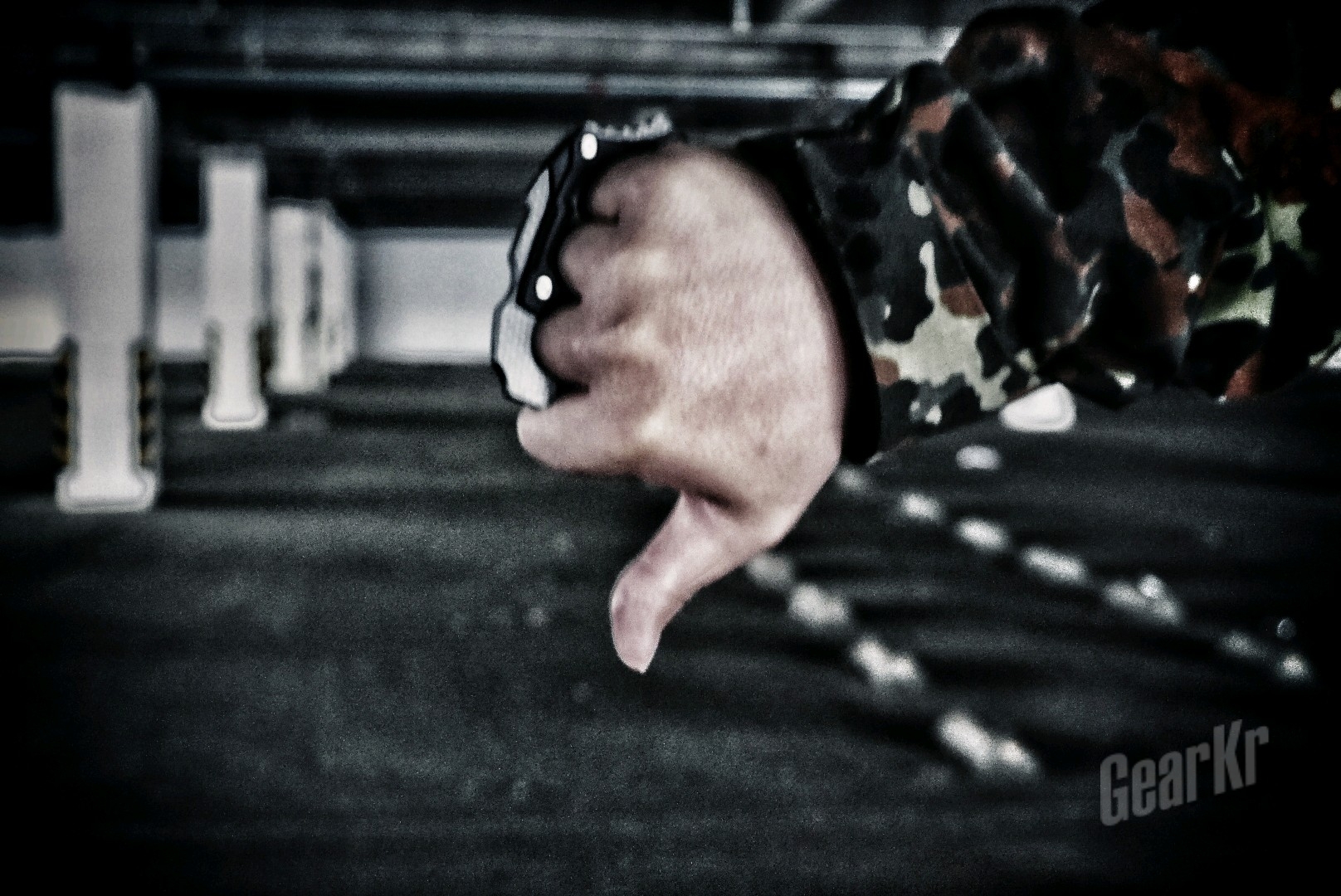 我选用韧性较好的橡胶轮胎进行测试,通过不同的打击方式进行。测试结果可以看出,手指本身并没有受到冲剂损伤,但是却增加了几处擦伤,主要原因还是,外观过于追求狰狞的视感,对舒适度有所牺牲造成的。还有就是屠的各个指空位有些局促,对于手指较粗的朋友来说,擦伤会更严重。并且也根本无法带手套来佩戴指虎。