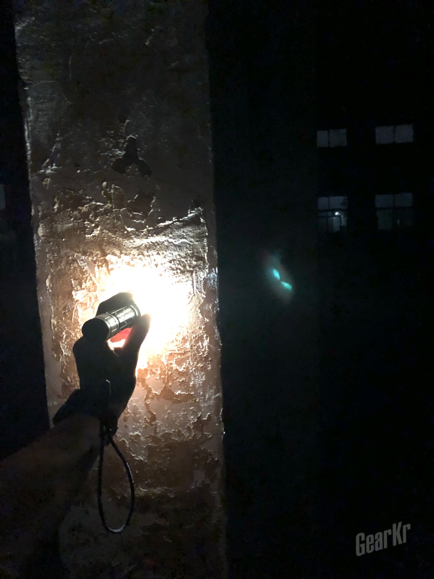 我记得还有利用手掌进行遮光的效果,但是穿透性很强,整个手都被照红透明了,只能说隐蔽效果比墙体稍微好一些吧。如果周围环境很暗那么很容易暴露自身位置,当然这是目前使用锯齿状灯头设计的共通处。值得商榷的是已经设计了很方便的战术开关为什么选择遮光而不是关机?什么时候叫做不适合使用按键、这类情况的实际使用次数占比多吗?攻击性锯齿灯头和遮光效果之间的选择?如果大量生产配发的性价比问题?