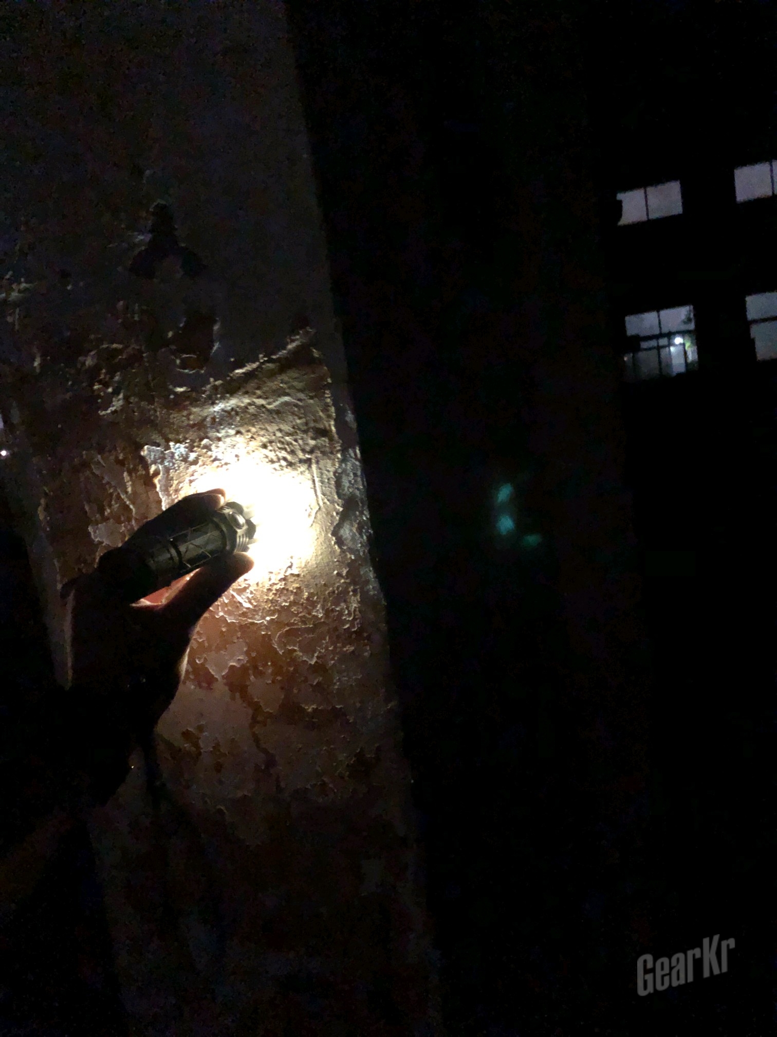 4.热光源温度处理科学,遮光问题有待商榷。4000流明的灯光确实温度不低,如果贴近皮肤亮灯,能够明显感受到温度,但是也不至于烫伤,长时间的照射也不会,一个是它的温度本身到不了高温的阶段,另一个是手电的温控芯片会发挥作用,在温度累积的时候芯片自动调整通光、亮度来降低温度。皮肤能够感受光线温度的距离大概在50-60cm,其实我发现这个发热的情况还可以作为紧急取热来使用,北方一些地区的低温时节,如果在户外人体部分区域受冻了,如果其他条件不允许,那么用这个极亮档位来照射取热也是一种没办法的办法吧,比如手指冻伤,那么可能这个发热光源的紧急取热能够保你几根手指吧。