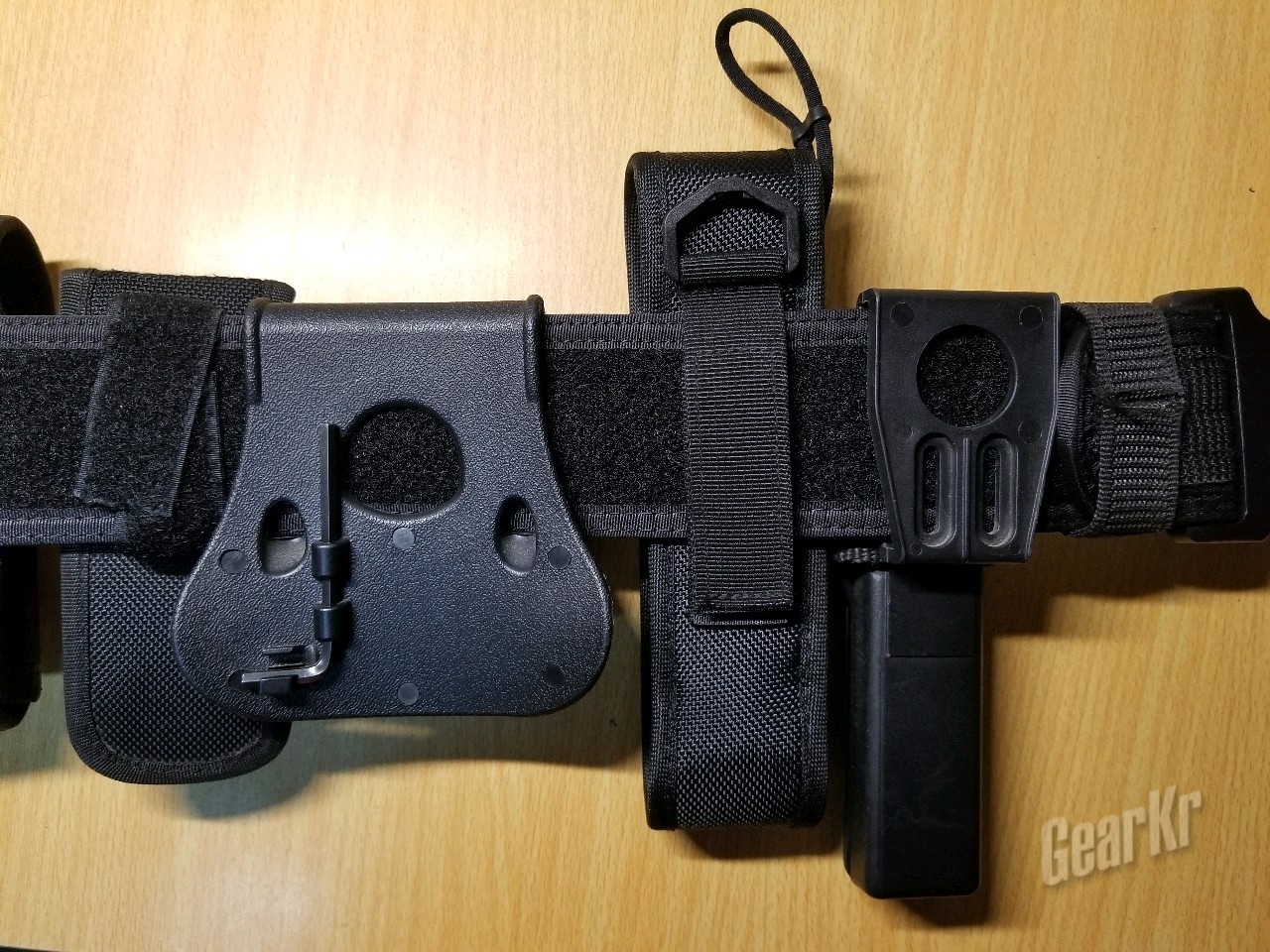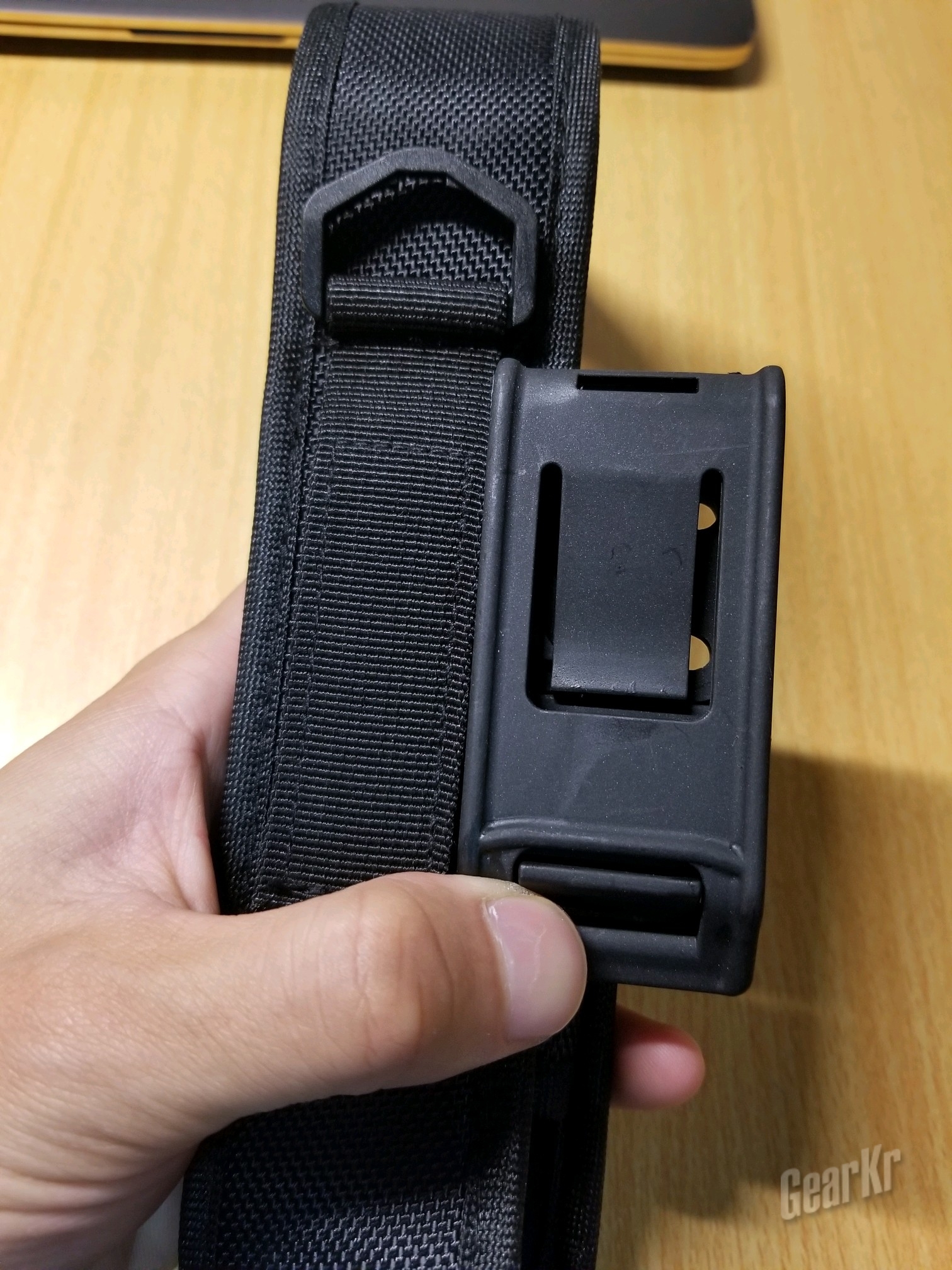 看着有些大,一鼓捣果然,装在5cm款的战术腰带和5.8cm的公发腰带都嫌大,带上固定性肯定不佳,容易晃动,