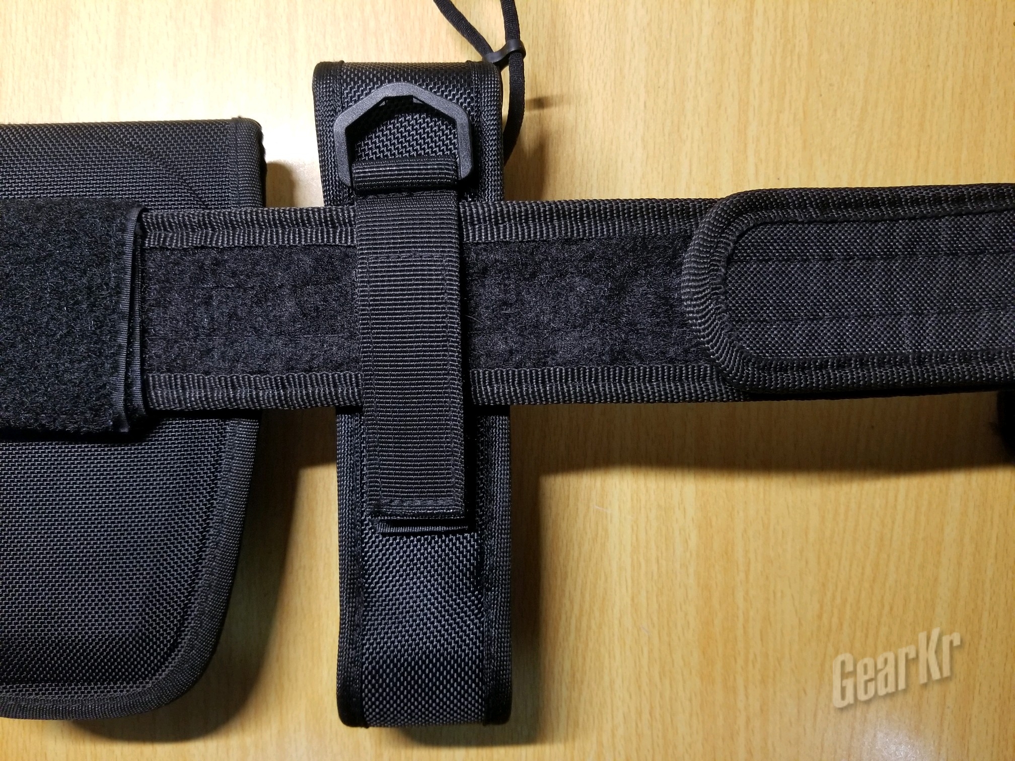 夹子的力道、韧性还是很好的,夹在腰带上应付一般的站岗执勤应该没问题,但是涉及大幅度动作的任务、出行,那还是不建议这样携行,有较大的几率会掉。再看看战术背心,