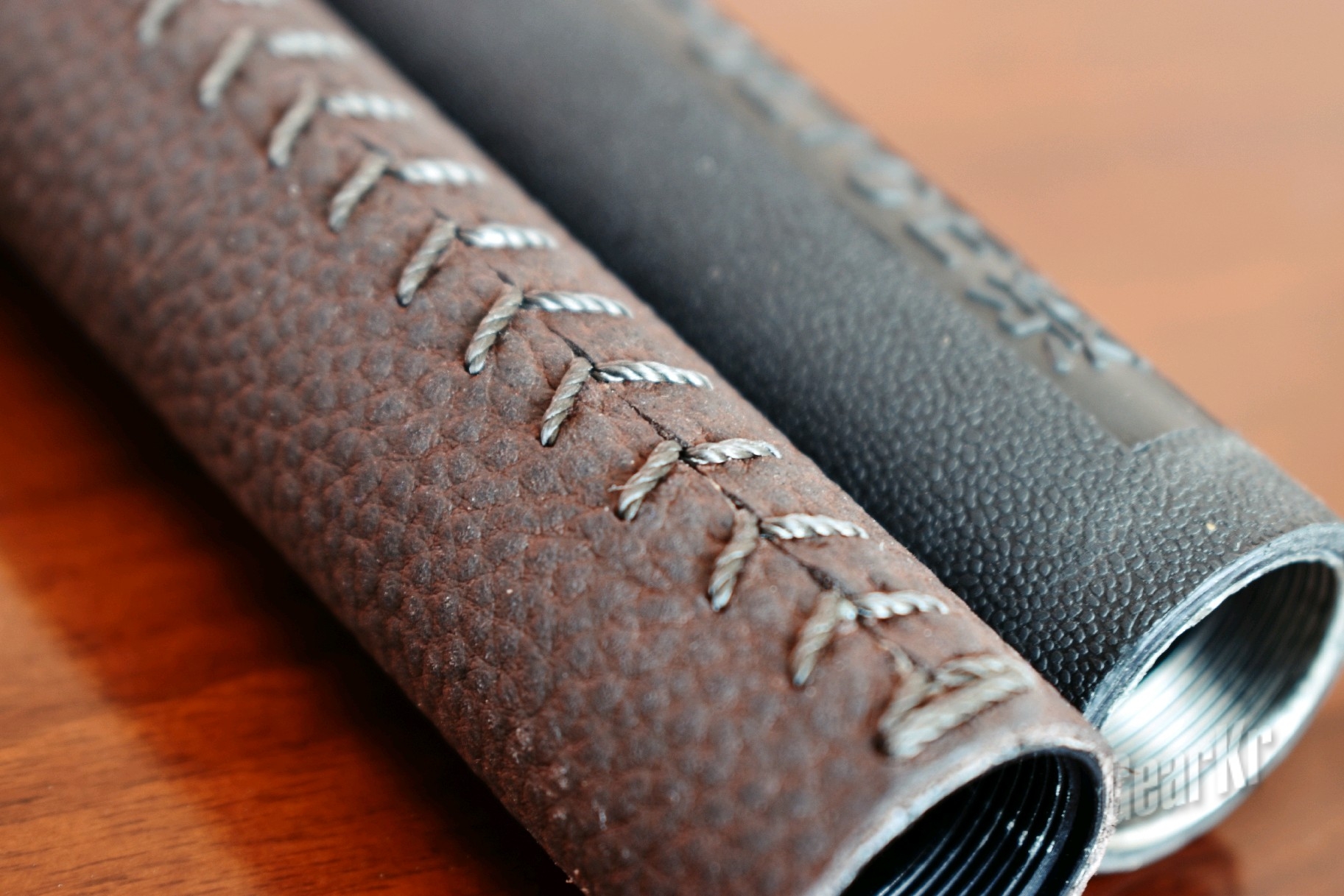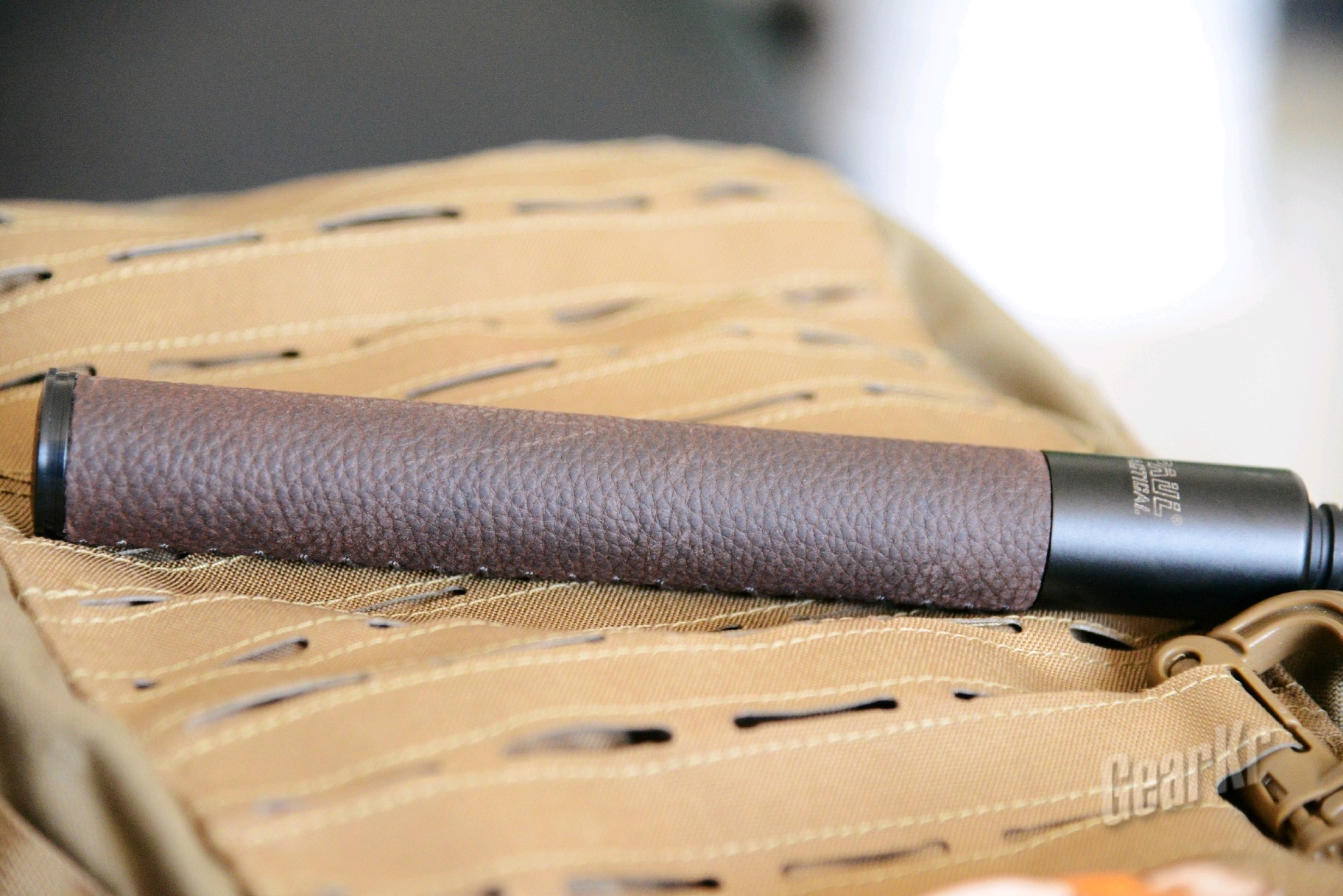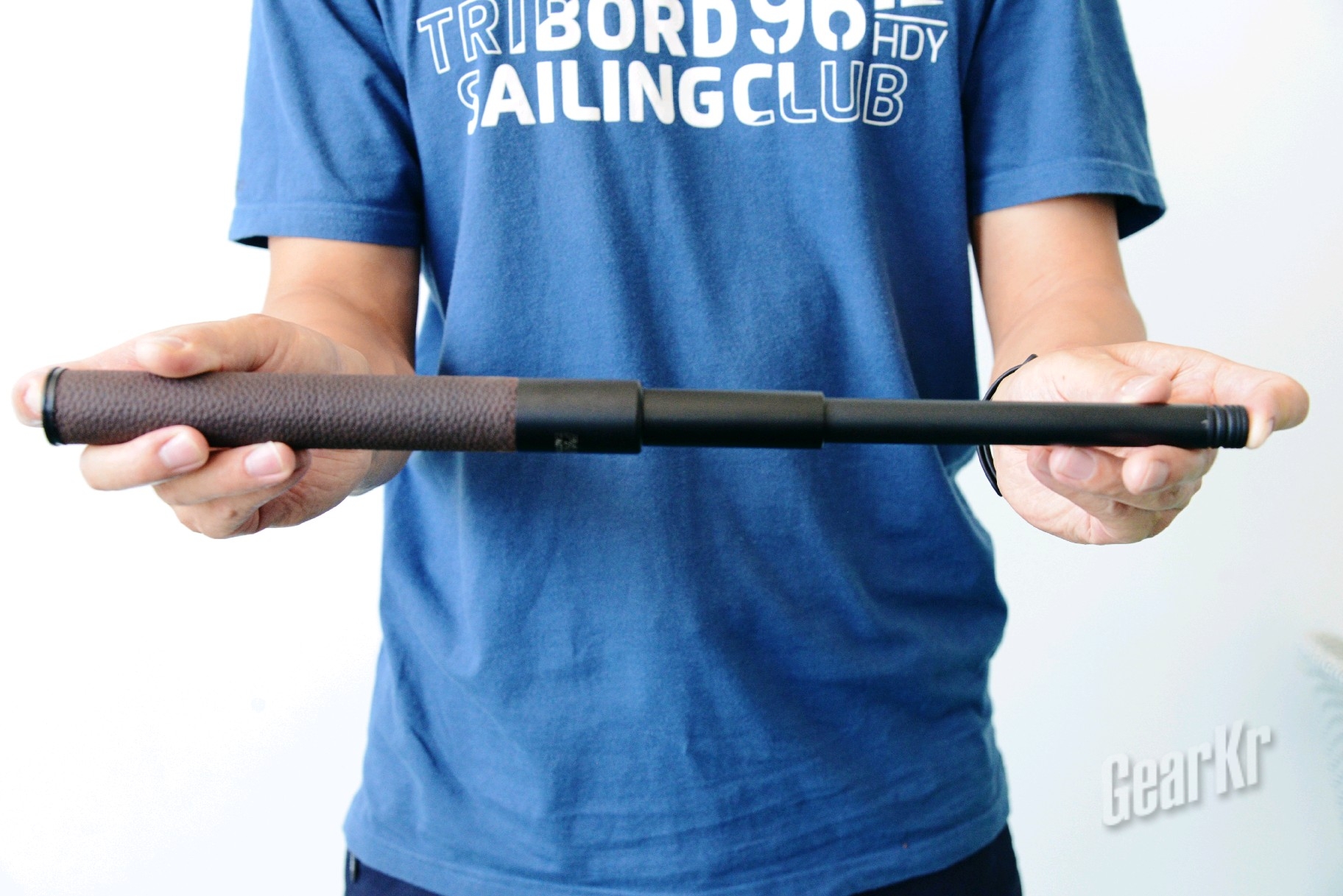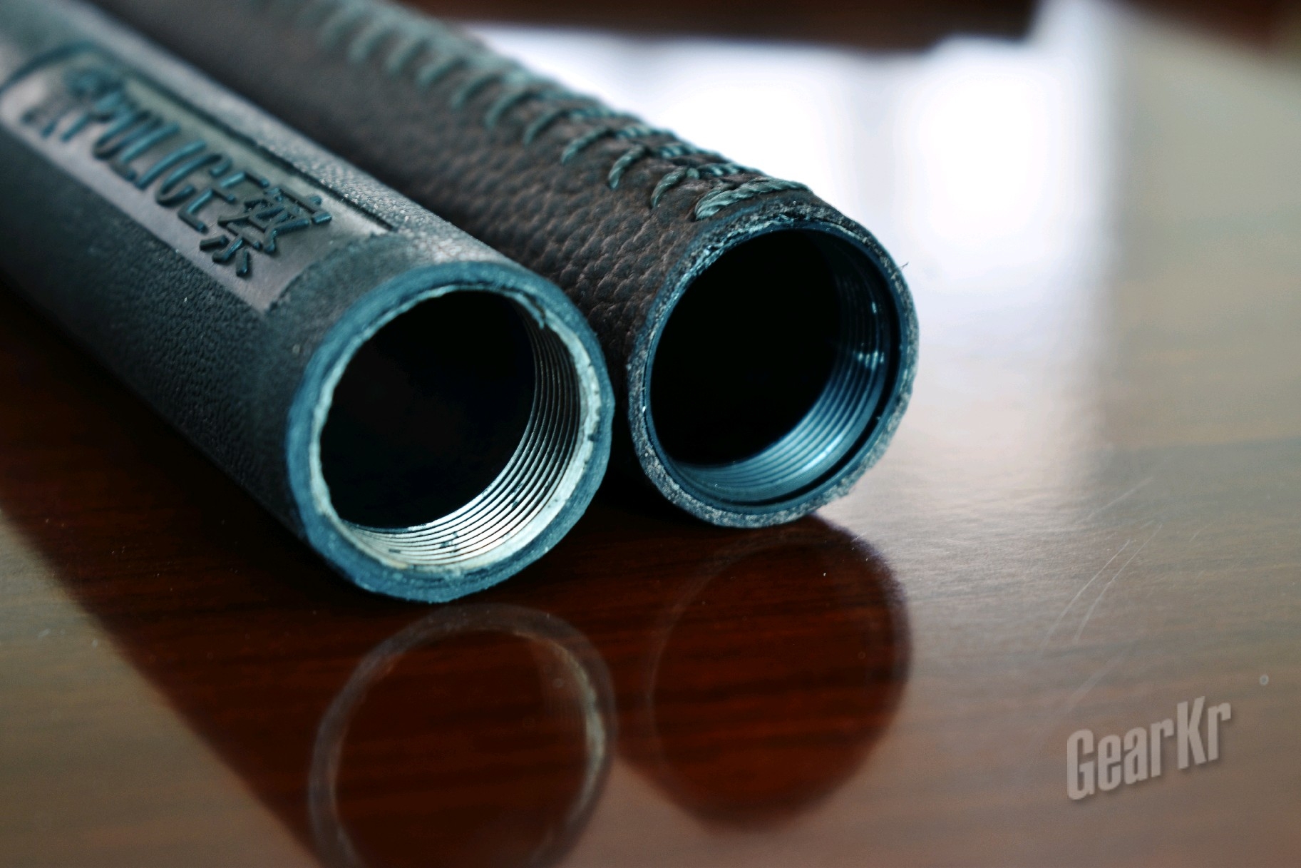 (二)外观:首先映入眼帘的是牛皮柄,虽然早有准备,但还是有些惊喜的,现行市面上的伸缩棍大多只能在棍身的材质跟手柄上下功夫,手柄有橡胶或、乙烯基发泡及胶皮材质,但使用牛皮材质的,据我了解,是首创;