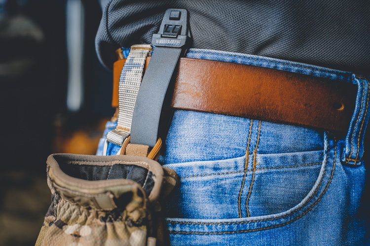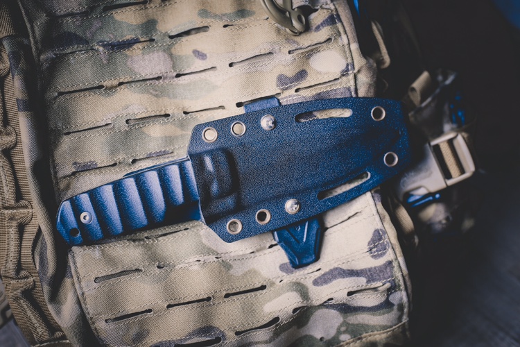 通过扣带一侧的小孔,我们还可以将它固定在其他工具套上,当作工具与MOLLE系统连接的桥梁