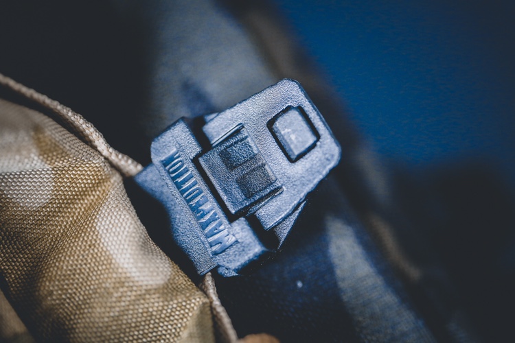 传统穿插连接,最大的好处是可以更加紧密的连接包体。然而,如果将PJC3这样穿插,下部的卡扣将很难插入,无法固定,因为PJC3采用的是比较硬质的合成材料,无法做到最大限度的弯曲。
