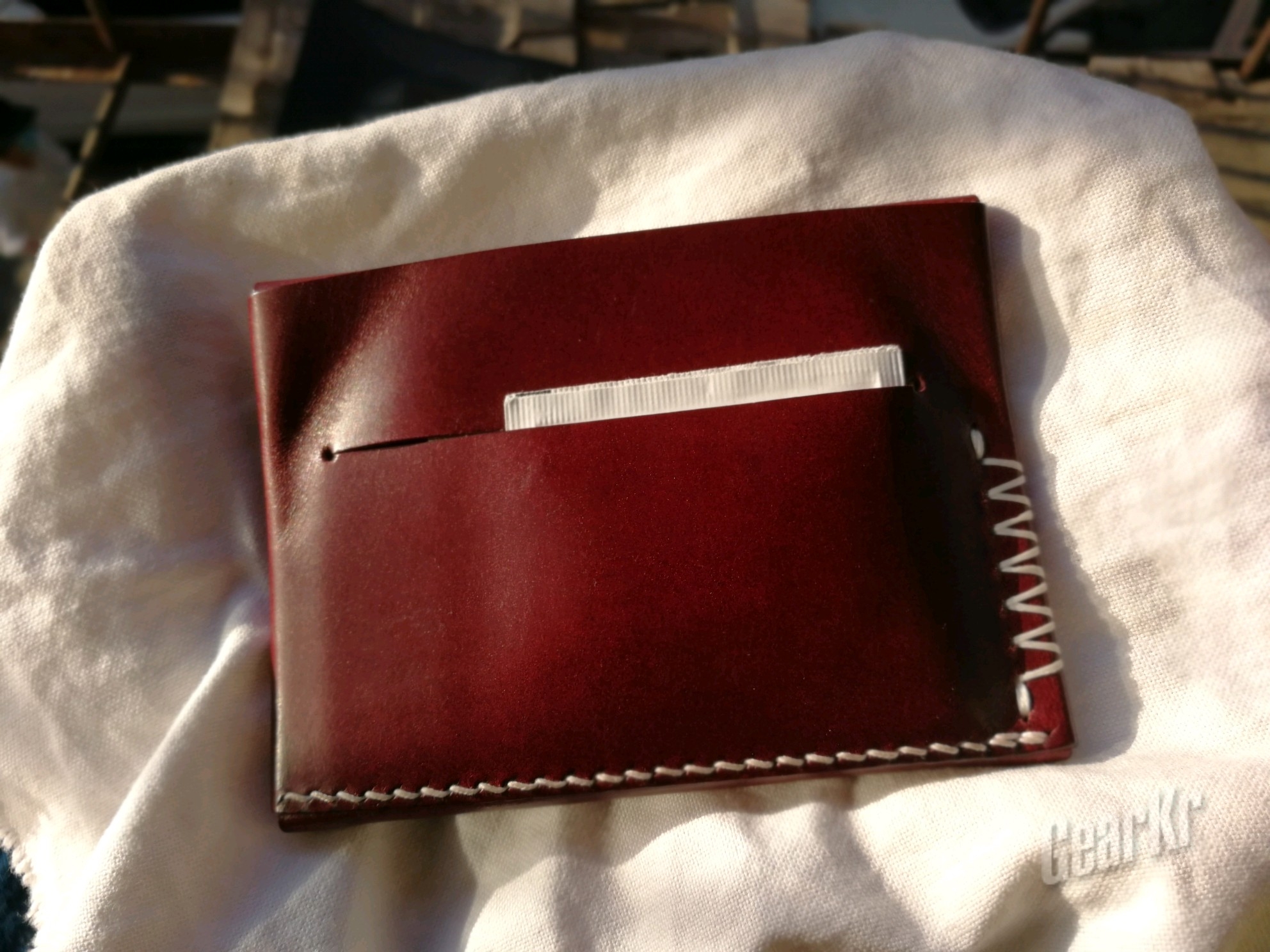 极简设计,是我非常喜欢的风格,当时我也在为自己寻找一款喜欢的edc卡包,看到这款后我就找了更多的图来研究他的尺寸和结构,试做了几个后,最终仿做成功,自用的这款是buttro的酒红色肩皮植鞣革做的,用了半年的时候,已经形成了属于我的痕迹