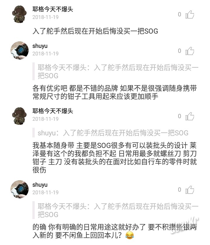 要买工具钳基本两家——Leatherman和SOG。找那个拉我入坑的朋友咨询,却是一力推荐莱钳。问及SOG,一脸蜜汁微笑。
