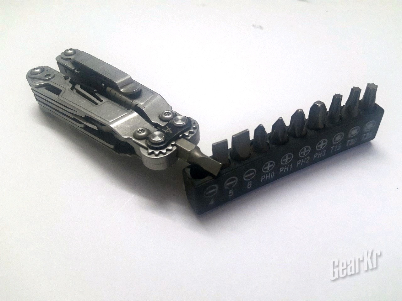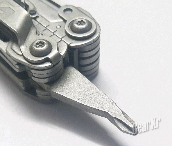 批头座这个功能,是SOG比较吸引我的一点。相比于莱泽曼使用的自己家的特殊结构批头,SOG使用的标准6mm批头,无疑是对我这种缺钱穷学生的吸引。而且,批头座在钳子完全闭合时,是小了一些、放不下6mm批头的,需要打开一些钳柄才能放进。因此,使用时,用力握钳柄就能夹紧批头,有效地防止批头掉落。但是只能在钳子收纳时使用,使得其不能像莱钳一样、将钳子开成90度去加力,在解决一些有些锈的螺丝时有些疲软。